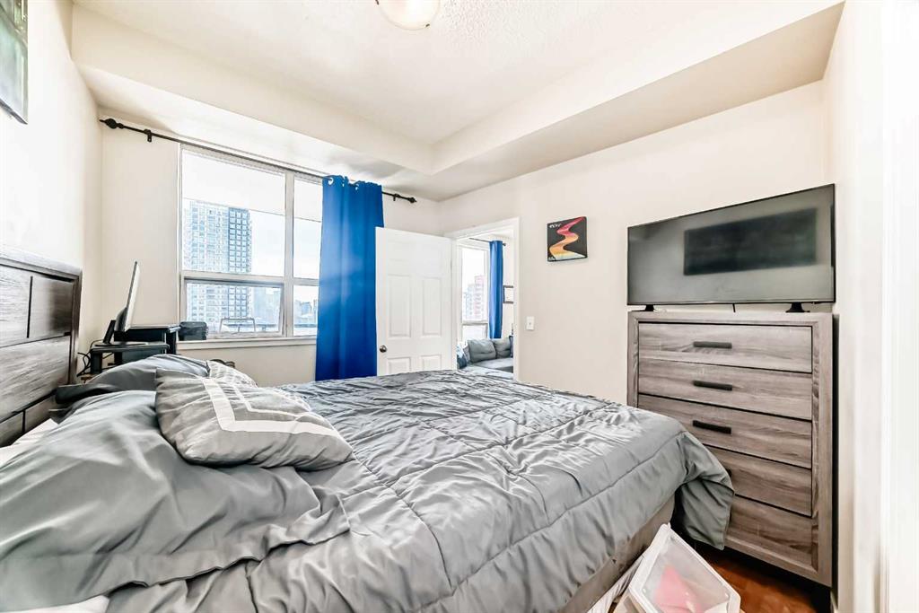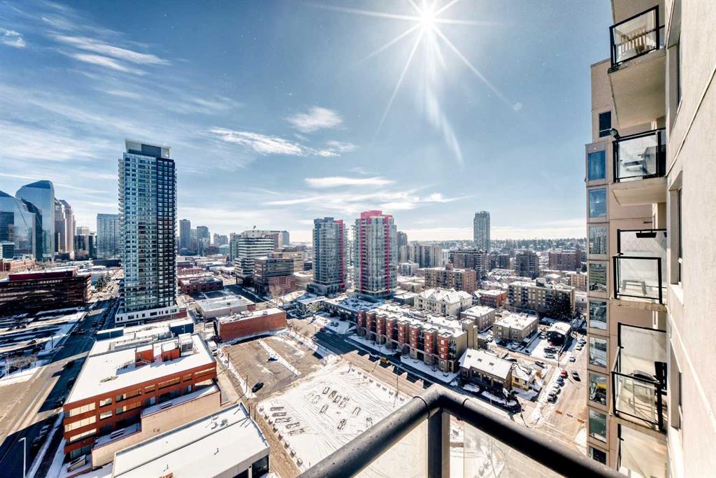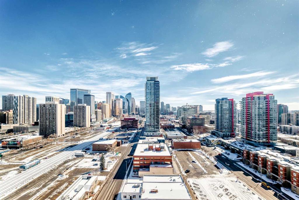 Welcome to this well-maintained 18th-floor unit offering stunning east-facing city views and an abundance of natural light through expansive floor-to-ceiling windows and 9-foot ceilings. The functional layout features a bright kitchen with granite countertops, black appliances, and neutral finishes, along with the convenience of in-suite laundry. Laminate and tile flooring run throughout the space. Step outside to your private east-facing balcony, complete with a gas hookup—perfect for enjoying morning coffee or summer BBQs. This unit includes one heated underground titled parking stall, and condo fees cover all utilities except cable. Ideally located, Calgary Co-op Midtown Market is just across the parking lot for easy grocery runs. The building also offers great amenities including a fitness room and secure underground visitor parking. Enjoy being within walking distance to Downtown Calgary, 17th Avenue SW, bike paths, and a wide range of shops, dining, and everyday conveniences. Don’t miss your chance to live in one of Calgary’s most walkable neighborhoods—schedule your private showing today!