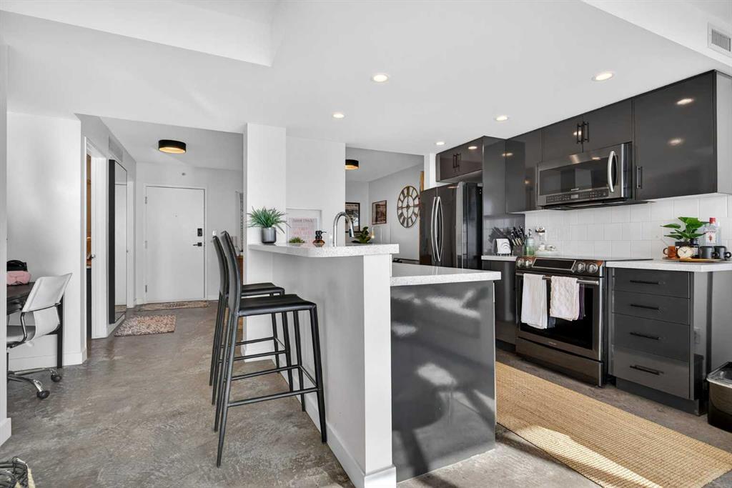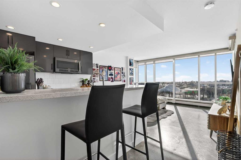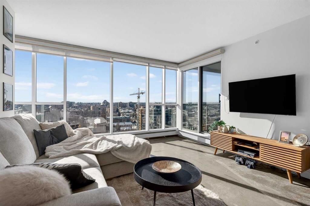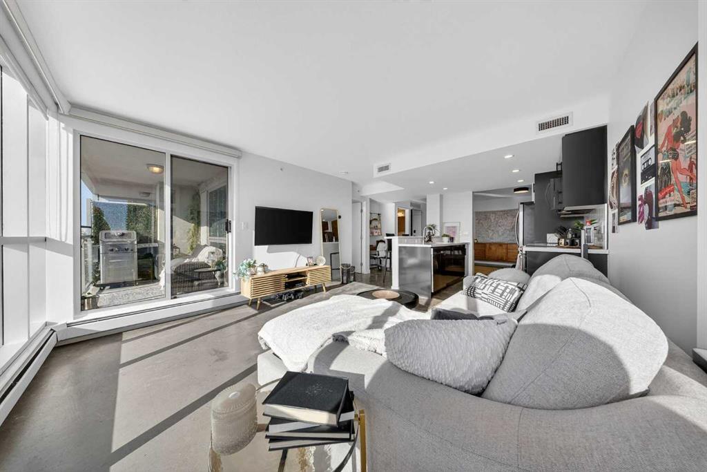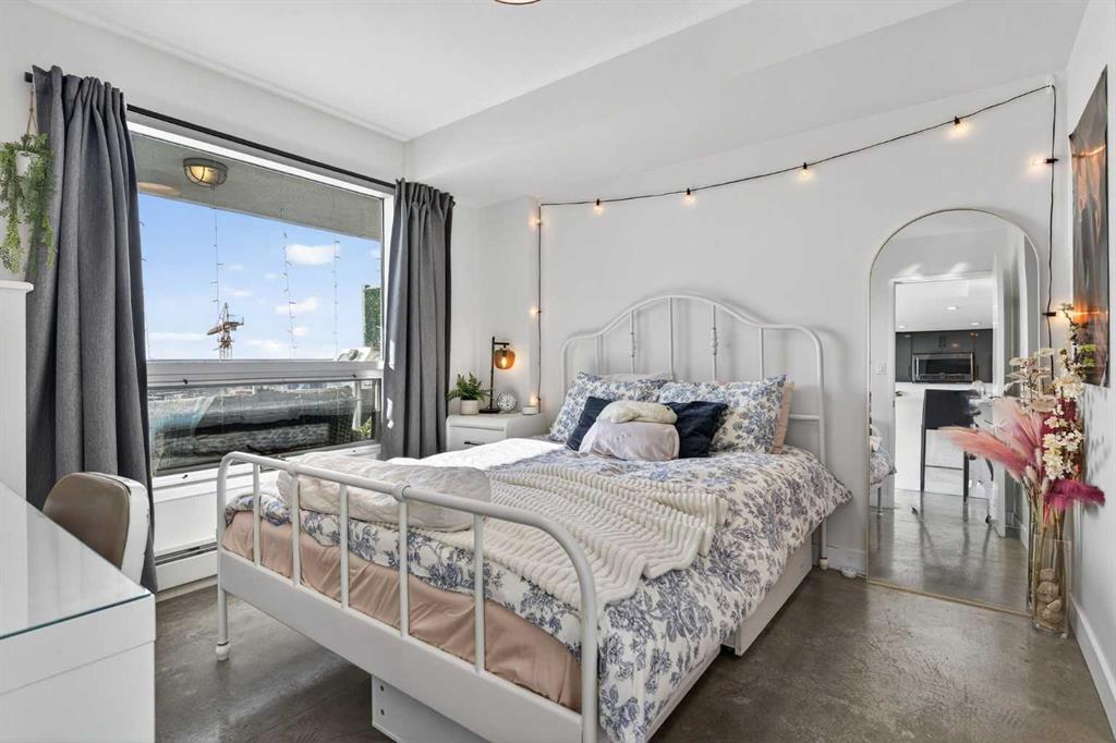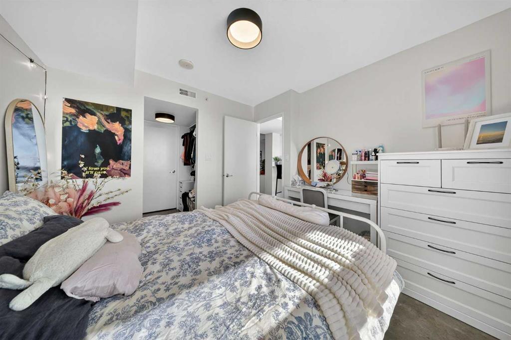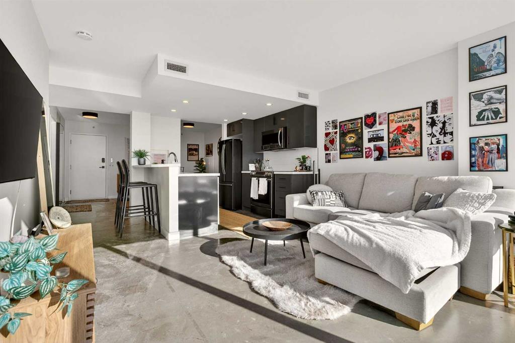 Welcome home! This 18th floor condo offers over 700 square feet of well-designed space with a functional, open layout that feels bright and connected. The kitchen features a breakfast bar for casual meals and opens directly into the living area. Floor to ceiling, south facing windows bring in natural light throughout the day, and the balcony offers open views with plenty of afternoon and evening sun with views of the mountains on a clear day. The primary bedroom includes a walk-through closet with cheater access to the 4-piece bathroom, creating a practical and efficient layout. There is also a generous flex space that could be used as a dining area, home office, reading corner, or a dedicated yoga or wellness space depending on your needs. In unit laundry and air conditioning add everyday comfort. A titled underground parking stall makes parking easy, and the building amenities include a recreation room, outdoor terrace/picnic area, and a rooftop patio with wide city and Stampede Park views. Up to three pets are allowed upon written board approval with no size or weight restrictions. Located in the heart of the Beltline, you’re close to 17th Avenue, MacLeod Trail, shopping, and dining options. Book your showing with your favourite REALTOR® today.