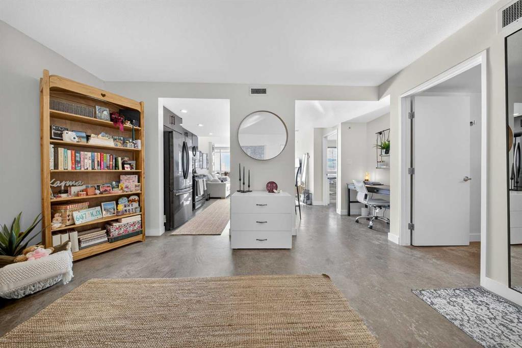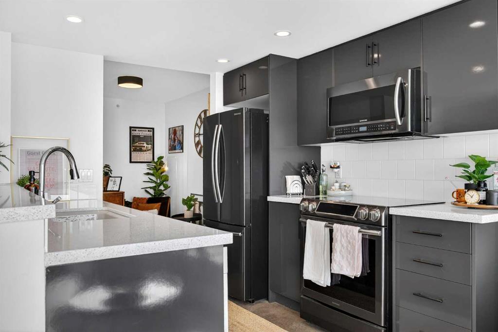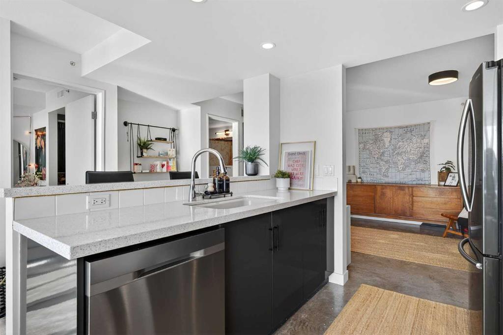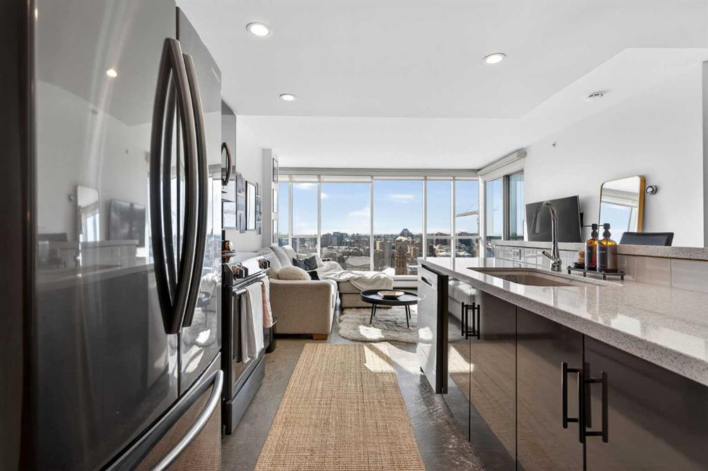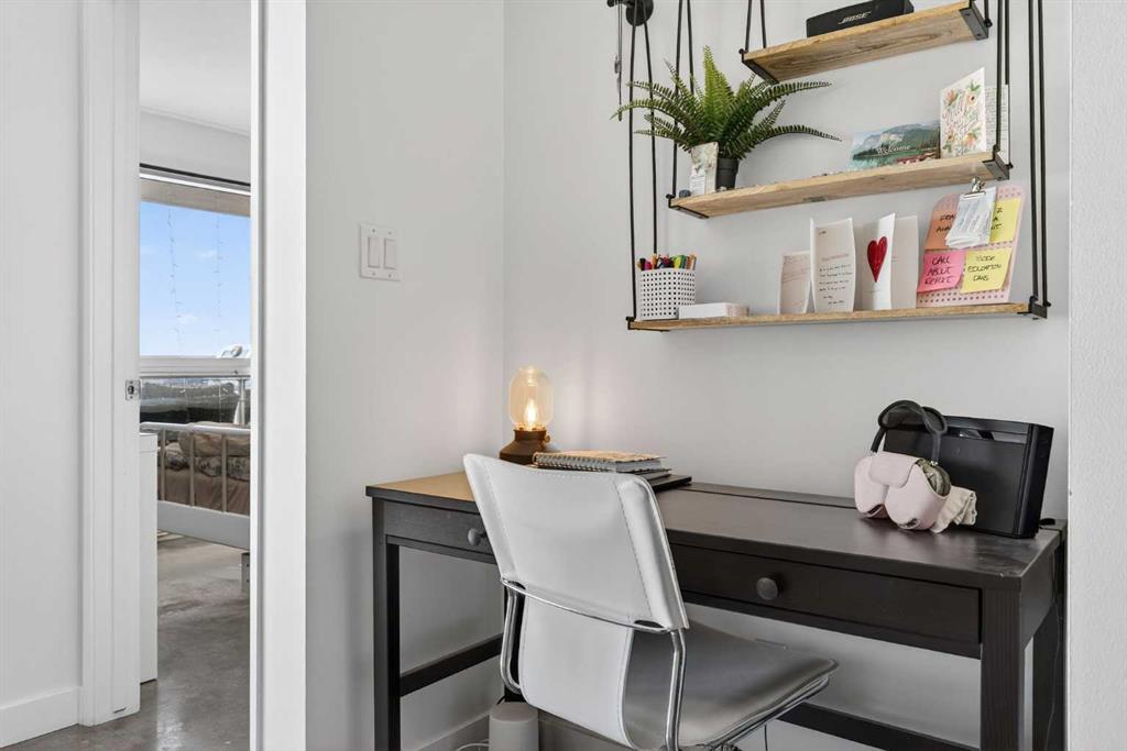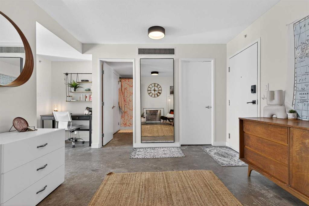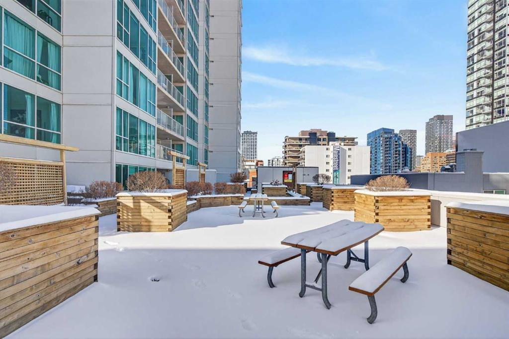 Welcome home! This 18th floor condo offers over 700 square feet of well-designed space with a functional, open layout that feels bright and connected. The kitchen features a breakfast bar for casual meals and opens directly into the living area. Floor to ceiling, south facing windows bring in natural light throughout the day, and the balcony offers open views with plenty of afternoon and evening sun with views of the mountains on a clear day. The primary bedroom includes a walk-through closet with cheater access to the 4-piece bathroom, creating a practical and efficient layout. There is also a generous flex space that could be used as a dining area, home office, reading corner, or a dedicated yoga or wellness space depending on your needs. In unit laundry and air conditioning add everyday comfort. A titled underground parking stall makes parking easy, and the building amenities include a recreation room, outdoor terrace/picnic area, and a rooftop patio with wide city and Stampede Park views. Up to three pets are allowed upon written board approval with no size or weight restrictions. Located in the heart of the Beltline, you’re close to 17th Avenue, MacLeod Trail, shopping, and dining options. Book your showing with your favourite REALTOR® today.