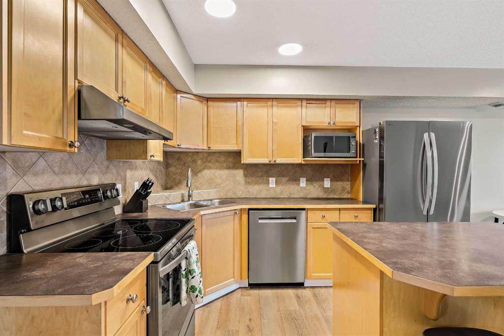 Welcome to #1806 – 140 Sagewood BV! This immaculate, bright 2-bedroom top-floor townhouse, has a south exposure backing onto green space with no rear neighbours and has been upgraded throughout! Recent upgrades include luxury vinyl plank flooring, stainless steel appliances, a full-size washer and dryer, all light fixtures, paint, closet organizers, baseboards, door trim, as well as all electrical outlets and switches! This open-concept floor plan is complete with a spacious kitchen with ample cabinetry that includes a center island and pantry with custom storage. The bright living and dining areas flow seamlessly together with large windows providing an abundance of natural light. The large primary bedroom features closet organizers, and a private south-facing balcony that overlooks the lush green space, perfect for enjoying your morning coffee or to unwind in the evening. The good-sized second bedroom provides plenty of space for guests, family, or a home office. Completing this home is a full 4-piece bathroom. Parking is convenient with your own stall and a visitor stall for guests right outside your door. This clean, very well-kept home with low condo fees is perfect for first-time home buyers, downsizers, or investors. Located in the desirable community of Sagewood, close to schools, parks, transit, and shopping! Book your private viewing today before this gorgeous townhouse is gone!