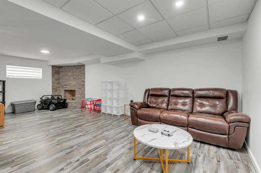 Inside, the main level features luxury vinyl plank flooring throughout, a bright living room with a large bay window, and a cozy wood-burning fireplace. The completely updated kitchen includes white cabinetry, black hardware, quartz countertops, a full wall pantry, and new stainless appliances, with room for a dining table set in front of another sunny bay window. The primary suite offers a private ensuite, spacious closet, and rare access to a private balcony. An additional bedroom, den, and a modern 4-piece main bathroom complete this level. The fully finished basement extends your living space with a large rec room anchored by a second wood burning fireplace, plus a another bedroom, dedicated office, full bathroom, laundry room, and plenty of storage. Situated on a generous lot, the property includes a long driveway ideal for RV parking and backs onto an alley for the option of adding a future garage. The fenced yard offers privacy, mature trees, and space for gardening, entertaining, or play. This home has been completely renovated and even includes a new roof, brand-new central A/C and new blinds ensuring this home is truly move-in ready. With a quiet setting, close proximity to schools, parks, shopping, and commuter routes, this Summerhill property offers both modern comfort and an incredible community lifestyle.