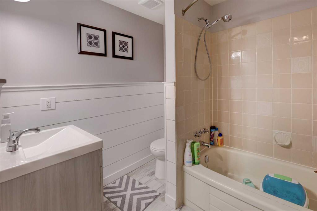 Downstairs, the fully developed basement includes a large family room, two generously sized bedrooms, a full bathroom, and a laundry area with additional storage space.