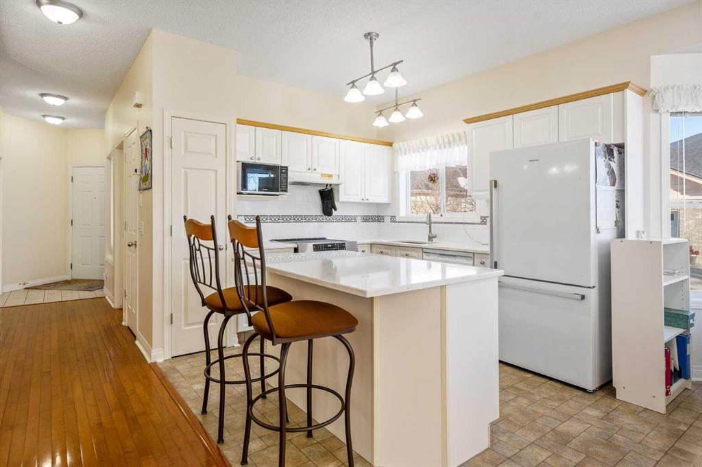 Welcome to the sought-after neighbourhood of Panorama Hills in NW Calgary. This townhome/bungalow in the adult (+18) community of Emerald Park is an ideal fit both location and convenience-wise for those with busy lifestyles. With 2,500sq. ft. of living space, a fully developed lower level, 4 bedrooms, 3 bathrooms, a front-facing insulated attached double garage, and numerous upgrades, this is the ideal home. The main level is an open floor plan and boasts warm, solid hardwood floors throughout with linoleum in the kitchen. Adjacent and to the left of the foyer is a bedroom which could be utilized as a home office. The dining room is sizeable and highlights a tray ceiling. Down the hall is the cozy, well-windowed (bow window) living room with a charming, tiled gas fireplace. The kitchen is a study in efficiency. Sleek, white cabinets and pantry, matching tiled backsplash, white quartz countertops, Blanco double sink newer white appliances, an island/breakfast bar and an induction range with convection oven. The breakfast nook also features a bow window flooding the main level with tons of natural light. The roomy primary bedroom has a good-sized closet and a handy 4-pc. ensuite with quartz countertop. The main level is completed with a 3-pc. bath and a laundry room cleverly hidden behind fitted doors. Moving to the fully finished, carpeted and well-designed lower level, enter a large and comfy rec room and two additional large bedrooms, both with substantial closet space. A 4-pc. bath, utility room and storage space finish the lower level. Admittance to the rear, railed, and very private (no neighbours in the back) deck is via the living room. The deck is ready for barbeque season with the benefit of a gas line. Access to everything is an understatement regarding location. At the junction of Panorama Hills and Country Hills Boulevard and the numerous shopping centers and restaurants, close to Stoney Trail, various schools, day homes and churches, Nose Creek Park, Country Hills Golf Club, Cross Iron Mills and Calgary International Airport. Take note of how well this home has been cared for and the many upgrades and improvements, i.e. the kitchen, new garage door, water softener and heater, new furnace and the valuable additions of central air conditioning and central vac. Also consider the convenience of common area maintenance by a professional property manager. Do call for your private tour to avoid missing out on this great opportunity.