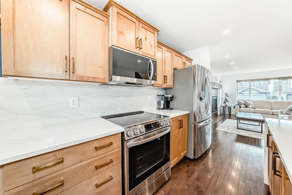 Nestled in the heart of Sunset Ridge this extensively renovated and upgraded home is a true gem! With over $100,000 in upgrades this home is as unique as the lot it sits on. The HUGE 21′ x 35′ HEATED fully finished triple car garage features a custom painted floor and three overhead doors, two leading to the lane in the back and one into the backyard. All permits were completed for the 16′ extension to the garage. Inside you will find a great open concept layout on the main floor. Featuring a brand new kitchen, renovations completed in 2025 featuring all new SS appliances, gorgeous quartz countertops, tile back splash, new shaker style cabinets with brass hardware, large waterfall kitchen island perfect for entertaining and custom coffee bar with with more storage space in the built in cabinets below. No details were overlooked and no expense was spared! The popcorn ceilings are no more with scraped knock down ceilings. The main floor half bath was also renovated with new vanity, toilet and floating shelves. The living room features a cozy gas fireplace and plenty of windows to let the natural light enhance the warm hardwood floors. Outside in the large back yard the deck was extended the length of the house with composite decking and glass railing, perfect for those summer time BBQ’s with the whole family. Upstairs you will find upgraded flooring throughout, 2 spacious bedrooms and the primary retreat large enough for a king bed, walk in closet and 4 piece ensuite. The basement was completed with all permits 7 years ago with cozy family room, 4th bedroom, 3 pc bathroom and plenty of storage. Perfect for guests or in law suite! The laundry room is also in the basement with brand new washer and dryer pair. The HWT was just replaced in 2021, the furnace is original and runs great with regular servicing and cleaning. It was last serviced in the summer of 2025. Sunset Ridge is home to kms of walking paths, Ranchview K-8 School, St. Timothy High School, shops, restaurants and gas bar with quick access to the Mountains or into town with the overpass construction almost at completion. Book a showing today and don’t miss out on this unique one of a kind property.