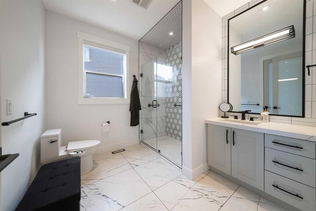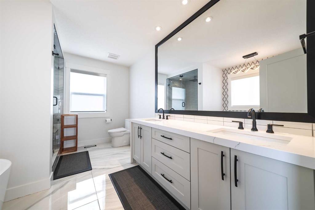 The main floor features a rare and highly sought after secondary primary suite, complete with a private full ensuite ideal for guests or family members seeking single level living. The heart of the home is a chef-inspired kitchen boasting premium stainless steel appliances and contemporary finishes, seamlessly paired with a walk-in spice kitchen for effortless entertaining.