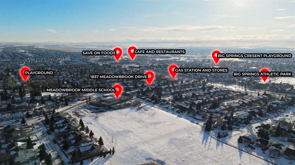 *** Price Improvement!*** Incredible 5 bedroom 2 bathroom BUNGALOW in family friendly Airdrie – Welcome home to 1837 Meadowbrook Drive. The main level showcases a bright, functional layout designed for easy living. Featuring 3 bedrooms and 1 full bathroom on main level & 2 additional bedrooms Plus Den on the lower level Including a full bath with soaker tub. The basement bedrooms do not have egress windows. Outdoors you will find the sunny south-facing backyard with level grassy space perfect for all your recreation needs! The backyard is complete with deck, swing & firepit for further enjoyment. The fully finished basement is a standout feature, offering multiple options for working, living & playing! For the hobbyist or commuter, the detached double garage and additional parking pad offer plenty of room for vehicles and storage. Featuring a prime location walking distance to multiple schools (with the added bonus of school routes being prioritized for snow plowing!), local shopping, restaurants, parks & pathways. Book your viewing today!