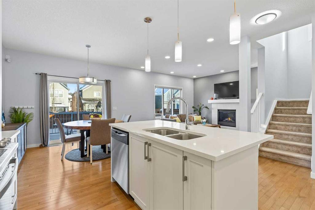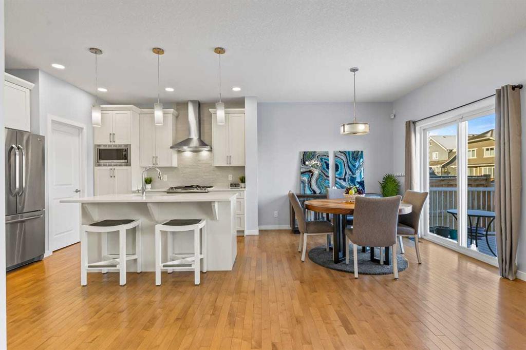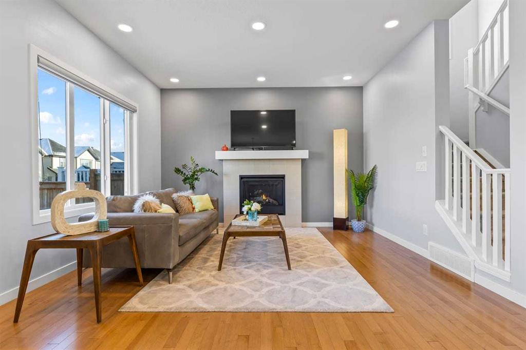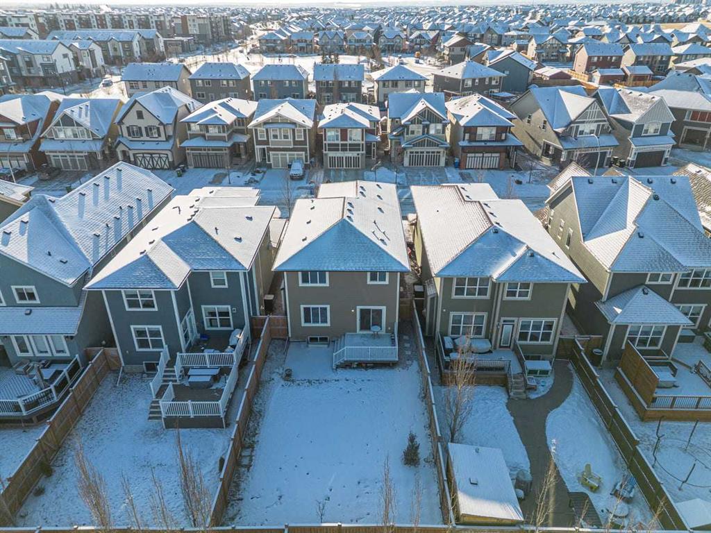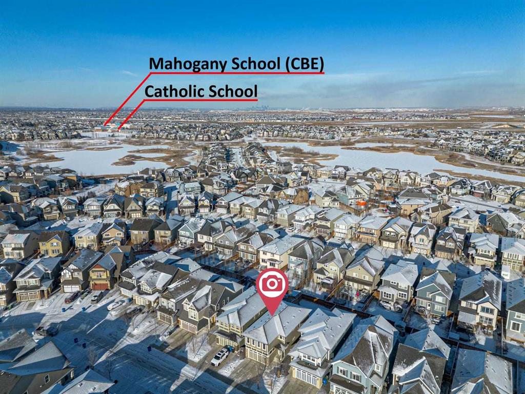 WELCOME TO THIS BRIGHT, BEAUTIFUL, THOUGHTFULLY DESIGNED 4 BEDROOM HOME located in the LAKE COMMUNITY OF MAHOGANY. This 4 bedroom, 2 1/2 bathroom home with DOUBLE ATTACHED GARAGE is situated in the coveted lake community of Mahogany. WELL MAINTAINED, it offers a welcoming OPEN CONCEPT MAIN FLOOR with a CONVENIENT DEN, ideal for work-from-home needs or a quiet study. Large windows flood the living spaces with natural light, while a cozy gas fireplace and stylish pot lights create an inviting ambiance. The main floor blends hardwood and tile with a modern aesthetic, featuring a chef’s kitchen that will delight any home cook. Cook and entertain in style with a bright kitchen that includes a WALK-IN PANTRY, a CENTRAL ISLAND, QUARTZ COUNTERTOPS, and STAINLESS STEEL APPLIANCES, including a GAS RANGE, HOOD FAN, and a BUILT-IN MICROWAVE. WHITE CABINETS paired with a STONE BACKSPLASH provide a timeless, high-end finish. Upstairs, retreat to a comfortable FAMILY BONUS ROOM perfect for movie nights or a play area. The SPACIOUS PRIMARY BEDROOM offers a walk-in closet and a luxurious 5 PIECE ENSUITE with DUAL SINKS, a SOAKER TUB, and an OVERSIZED SHOWER. Three additional well-sized bedrooms share the well-appointed upper level, along with a LARGE LAUNDRY ROOM featuring ample shelving for easy organization. The unfinished basement provides a blank canvas for future development to suit your needs. The fully fenced and landscaped yard is ready for outdoor enjoyment and gatherings. Mahogany is a premier lake community with schools, parks, playgrounds, pathways, and an abundance of amenities within reach. Shopping, restaurants, and professional services are nearby, making this location incredibly convenient. DON’T LET THIS BEAUTIFUL HOME SLIP AWAY! BOOK YOUR SHOWING TODAY.