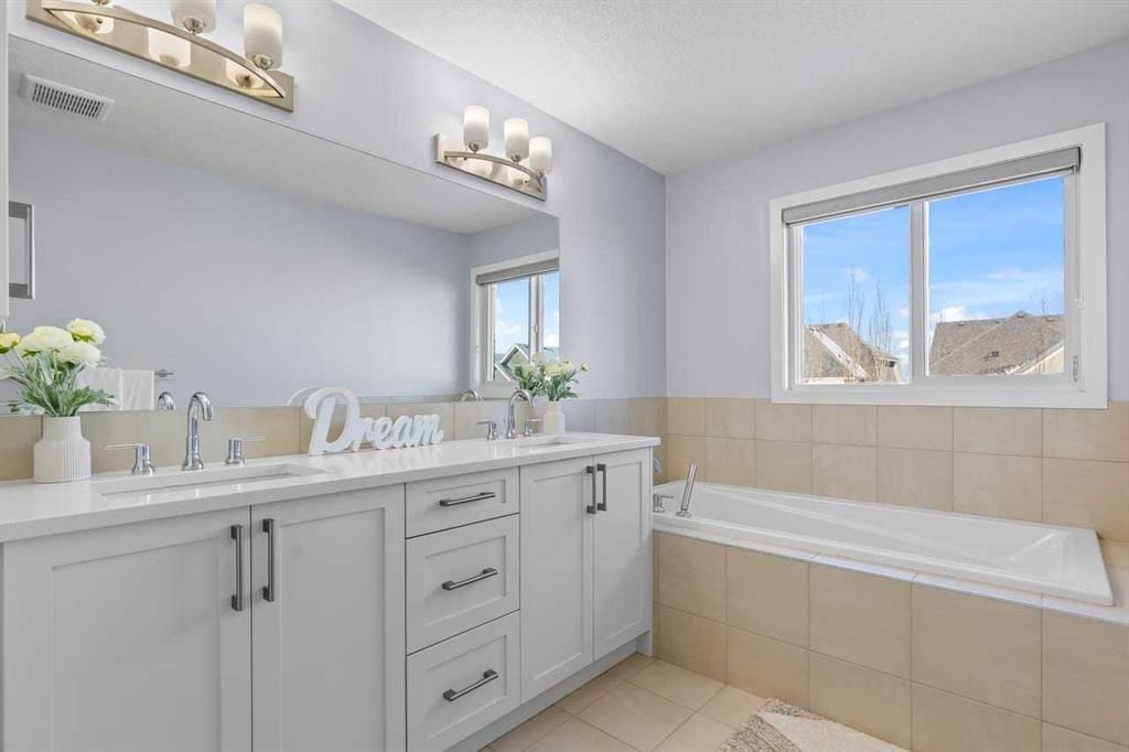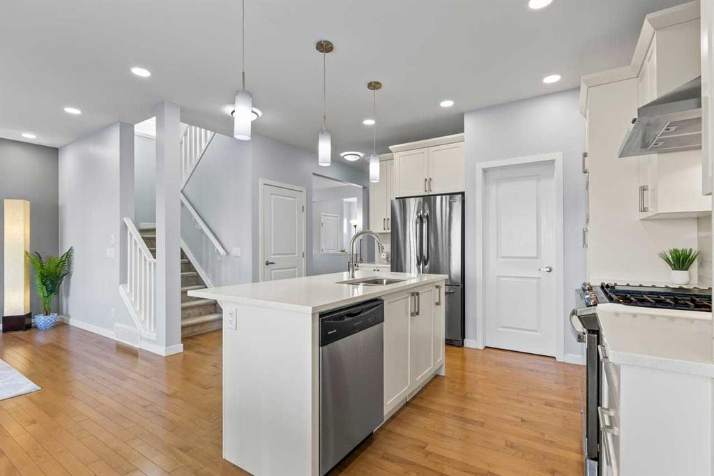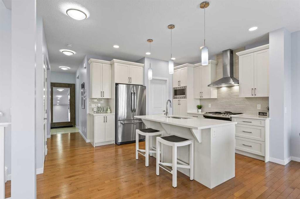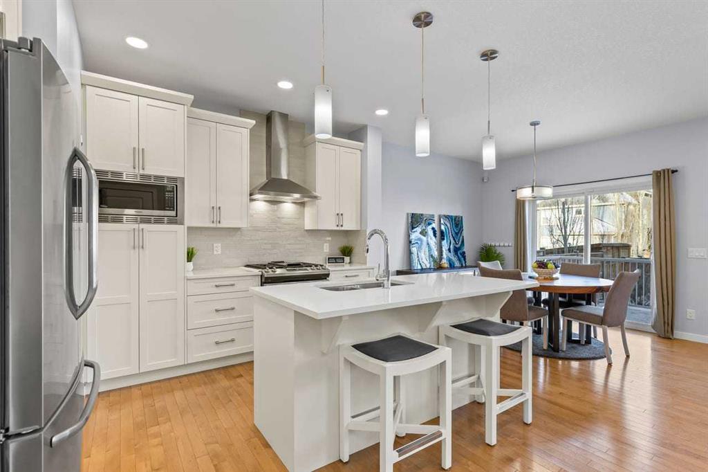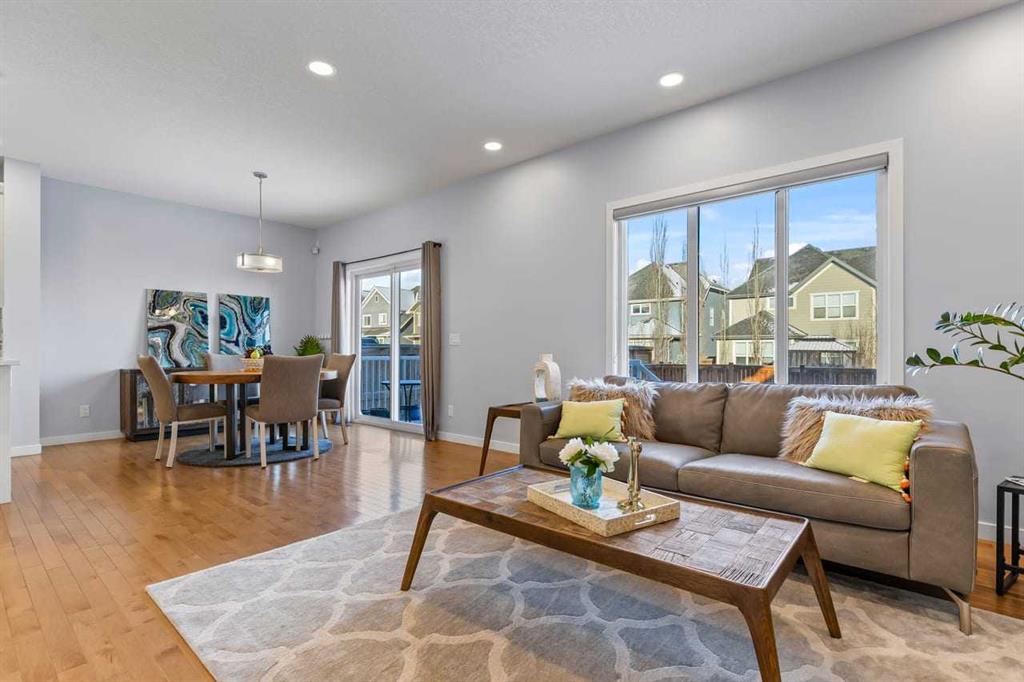 WELCOME TO THIS BRIGHT, BEAUTIFUL, THOUGHTFULLY DESIGNED 4 BEDROOM HOME located in the LAKE COMMUNITY OF MAHOGANY. This 4 bedroom, 2 1/2 bathroom home with DOUBLE ATTACHED GARAGE is situated in the coveted lake community of Mahogany. WELL MAINTAINED, it offers a welcoming OPEN CONCEPT MAIN FLOOR with a CONVENIENT DEN, ideal for work-from-home needs or a quiet study. Large windows flood the living spaces with natural light, while a cozy gas fireplace and stylish pot lights create an inviting ambiance. The main floor blends hardwood and tile with a modern aesthetic, featuring a chef’s kitchen that will delight any home cook. Cook and entertain in style with a bright kitchen that includes a WALK-IN PANTRY, a CENTRAL ISLAND, QUARTZ COUNTERTOPS, and STAINLESS STEEL APPLIANCES, including a GAS RANGE, HOOD FAN, and a BUILT-IN MICROWAVE. WHITE CABINETS paired with a STONE BACKSPLASH provide a timeless, high-end finish. Upstairs, retreat to a comfortable FAMILY BONUS ROOM perfect for movie nights or a play area. The SPACIOUS PRIMARY BEDROOM offers a walk-in closet and a luxurious 5 PIECE ENSUITE with DUAL SINKS, a SOAKER TUB, and an OVERSIZED SHOWER. Three additional well-sized bedrooms share the well-appointed upper level, along with a LARGE LAUNDRY ROOM featuring ample shelving for easy organization. The unfinished basement provides a blank canvas for future development to suit your needs. The fully fenced and landscaped yard is ready for outdoor enjoyment and gatherings. Mahogany is a premier lake community with schools, parks, playgrounds, pathways, and an abundance of amenities within reach. Shopping, restaurants, and professional services are nearby, making this location incredibly convenient. DON’T LET THIS BEAUTIFUL HOME SLIP AWAY! BOOK YOUR SHOWING TODAY.