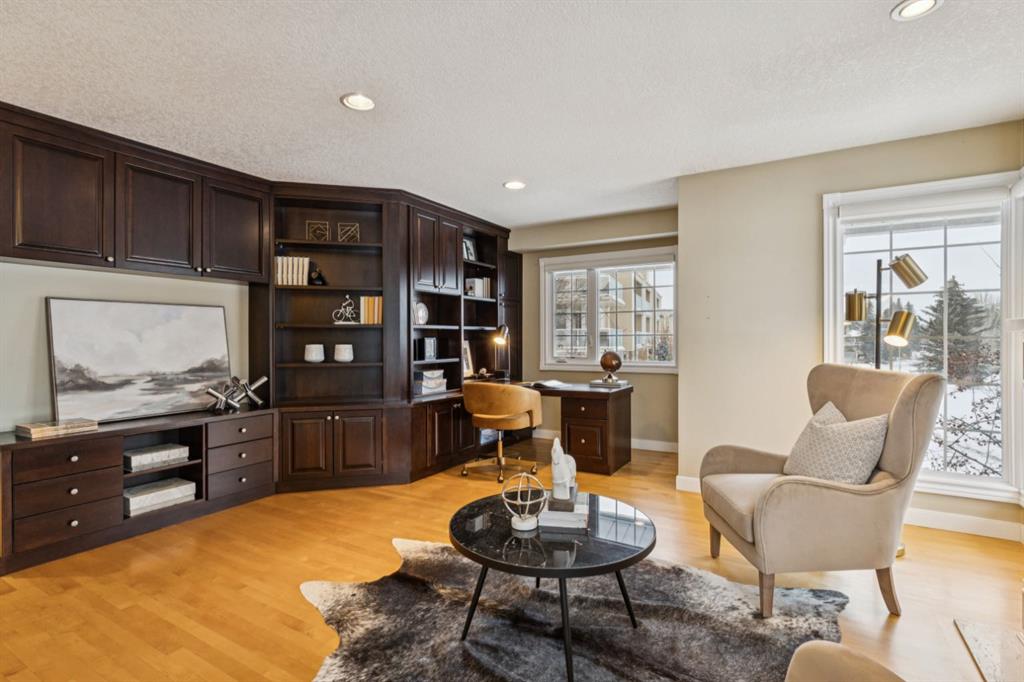 As you ascend to the upper level, you’ll find an enormous den featuring its own fireplace, providing additional versatile space for lounging or working from home. The primary bedroom retreat is a true sanctuary, complete with French doors, a spacious 5-piece ensuite bathroom with heated floors, and a generous walk-in closet, ensuring comfort and privacy.
