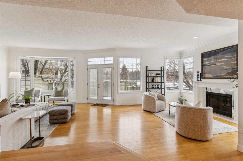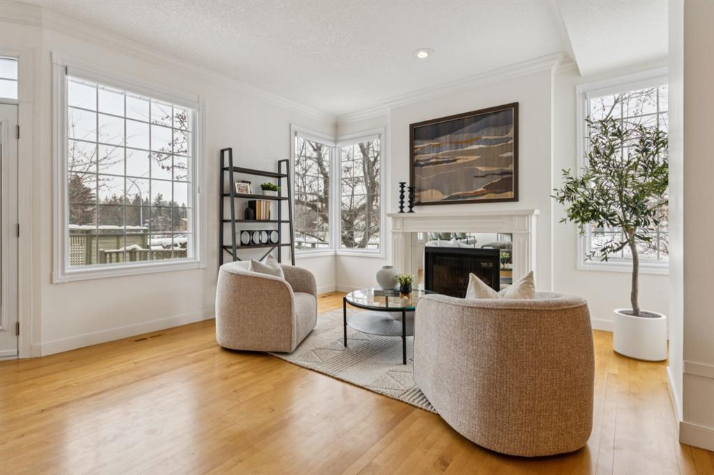 Step inside to a tiled entryway that leads to spacious rooms filled with natural light. The main level showcases gorgeous newer maple hardwood flooring and a thoughtfully chosen color palette that exudes modern elegance. The large living room offers multiple seating areas, highlighted by an elegant fireplace, creating a perfect atmosphere for relaxation and entertainment. The open-concept dining area flows seamlessly into an inviting kitchen equipped with granite countertops, a central island, pantry, and a gas stove—ideal for culinary enthusiasts. A convenient main floor 2-piece washroom is also located here.