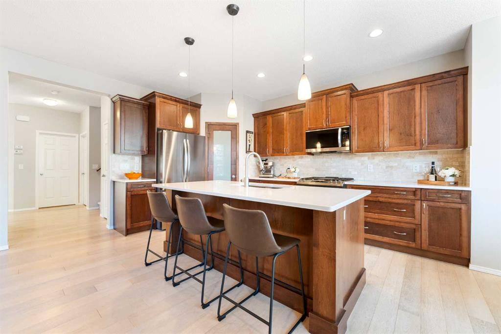 OPEN HOUSES will be on Sat. Feb 28th from 1-4 PM & Sun. Mar 1st from 1-4 PM! WOW! Check out your new home in the heart of Auburn Bay and you will be just a few minute drive to the LAKE, there are also numerous schools, parks, playgrounds, walking paths and ponds close by as well as the Hospital, YMCA, off leash dog park, so many shops, restaurants, bars and shopping right at your doorstep! As you enter the home you are greeted by beautiful light hardwood flooring throughout the main floor, a good sized main floor office that is perfect for the stay at home professional! The main living area is amazing with a gorgeous kitchen as the focal point of the main floor and features stainless steel appliances, gas stove with a double oven, beautiful newer quartz countertops, subway tiled backsplash, garburator, corner pantry and ample cabinet and counter space! The adjacent dining area is so bright and sunny and has vaulted ceilings and can easily accommodate an 8 person table! The main floor is completed with a cozy living room with a gas fireplace, a half bath and a mudroom with the upgraded washer and dryer! Upstairs has an awesome bonus room that you can enjoy the summer sunsets from on the balcony off of the front of the house, as you make your way down the hall the primary suite is set up perfectly with separate sinks for convenience with the soaker tub in the middle as well as a separate shower, a make up area and a walk in closet! There is also another full bathroom for the kids and 2 more bedrooms upstairs :) The basement is unfinished and has a perfect set up for future development (bedroom, bathroom and rec room) The back yard is a private and serene oasis that is private, offers numerous trees, a gas fire table to enjoy and a beautiful deck! If that isn’t enough you will also appreciate the newer carpet throughout, newer fridge and dishwasher, new sinks in the bathrooms, updated hot water tank and the location is amazing! Come and have a look at your NEW HOME!