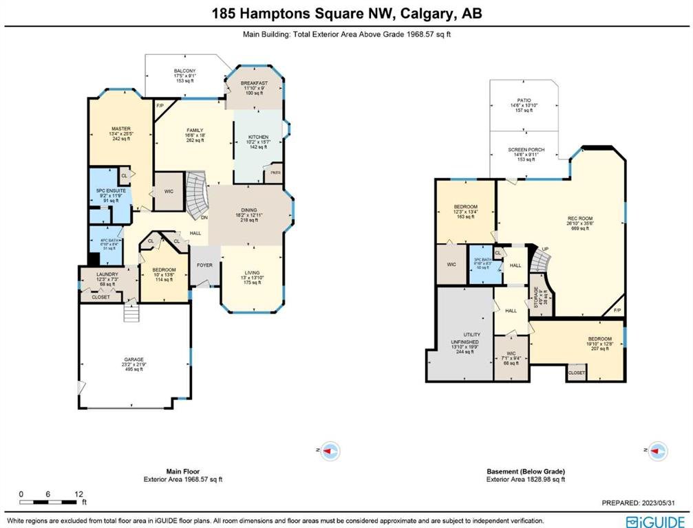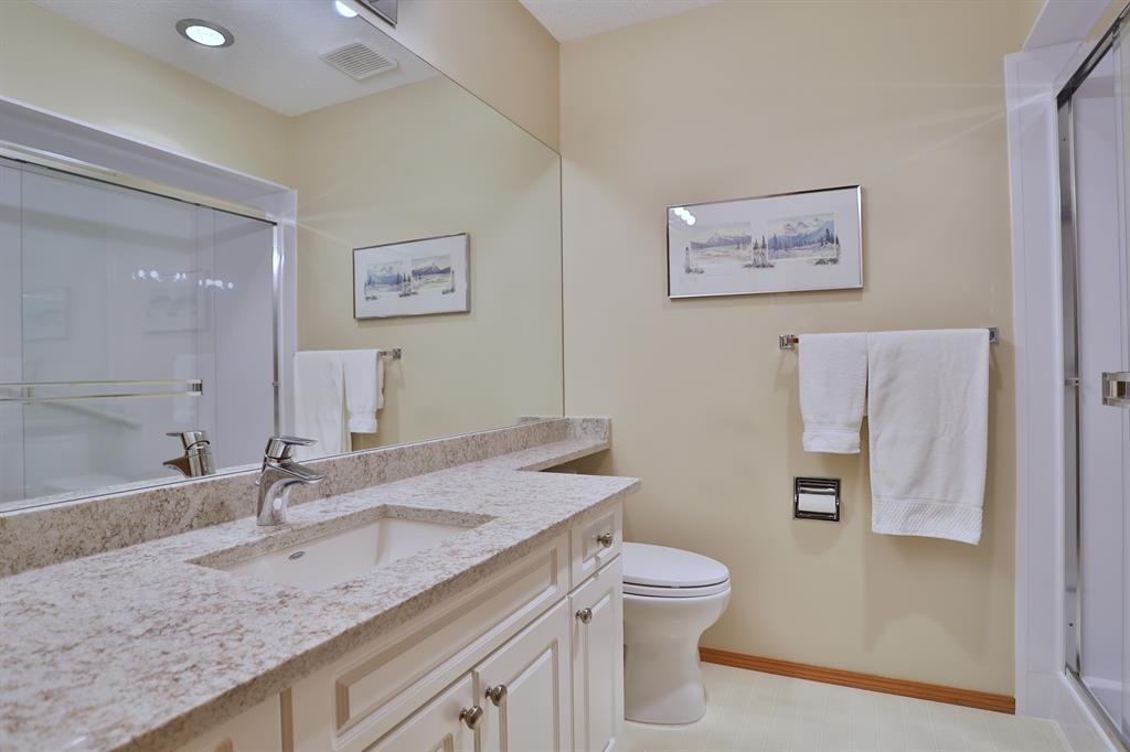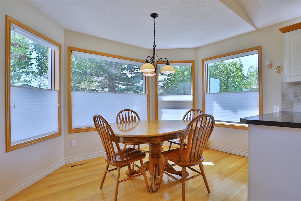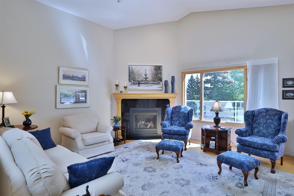 Backing onto a park in exclusive Hamptons Square is where you’ll find this beautifully maintained home in the highly-desirable golf course community of the Hamptons. Built by Calbridge on this wonderful corner lot, this mint condition walkout bungalow enjoys gleaming hardwood floors & skylights, 4 bedrooms & 3 full bathrooms, renovated white kitchen with granite countertops & fabulous walkout level with sensational enclosed patio. You will just love the warm & inviting design of the air-conditioned main floor with its expanse of vaulted ceilings & windows, featuring the West-facing living room with wraparound windows, open concept formal dining room with bay window & sun-drenched family room with new fireplace (2022). The beautiful updated kitchen has granite counters, walk-in pantry & the upgraded appliances include cooktop stove, double built-in convection ovens & Bosch dishwasher. Two bedrooms & 2 full baths on the main floor highlighted by the private owners’ retreat with large walk-in closet & jetted tub ensuite with heated floors, skylight & separate shower. The 2nd bathroom – also with heated floors, is conveniently right across from the 2nd bedroom. The walkout level is finished with 2 big bedrooms, full bath with oversized walk-in shower, huge open games/rec room with fireplace & fabulous enclosed patio with access onto a 2nd patio in the private treed backyard. Main floor laundry room complete with sink, lots of closet space & Bosch washer & dryer. Additional features & extras include Hunter Douglas blinds, NEST thermostats & CO/smoke detectors, motion & hue lights, underground sprinklers, heat lamps in the main & walkout bathrooms, oversized 2 car garage with built-in cabinets & central vacuflo system with 3 hoses (2 for the house & 1 for the garage). Other improvements: clay tile roof (2022), renovated bathrooms with quartz counters (2015), hot water tank (2019), both furnaces (2017), water softener (2014) & window glass (2017). Prime location within walking distance to bus stops & tennis courts, only a few short minutes to shopping at Hamptons Co-op & Edgemont Superstore, plus quick easy access to Nose Hill Park, Crowfoot Centre & LRT, major retail centers, University of Calgary, hospitals & downtown.