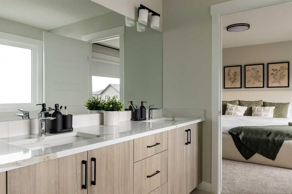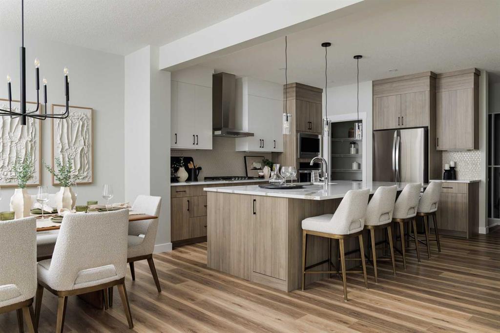 This quick-possession front-drive home offers a well-balanced layout with upgraded finishes and strong everyday functionality in Glacier Ridge. Featuring 2,284 sq.ft., 3 bedrooms, and 2.5 bathrooms, the main floor is finished with 9’ ceilings, luxury vinyl plank flooring, a rear kitchen with quartz countertops, stainless steel appliances including a gas cooktop and built-in wall oven, a flush eating bar, and a walk-in pantry. The dining area and great room are bright and open, highlighted by an electric fireplace, while a dedicated main floor office adds practical work-from-home space. Upstairs includes a spacious bonus room, a large primary bedroom with walk-in closet and ensuite featuring tiled shower walls, two additional bedrooms each with walk-in closets, a generous laundry room, and upper-level railing. Added highlights include iron spindle railing on both levels, extra side and basement windows, permanent soffit lighting, a side entry, gas line for BBQ, an 8’ front entry door with transom, and a 9’ basement foundation offering future development potential. Located in Glacier Ridge, a growing northwest Calgary community with parks, pathways, and convenient access to major routes, this home includes the confidence of a full builder warranty. Book your showing today. (Interior photos are of a showhome with similar layout and may not fully represent the property for sale)
