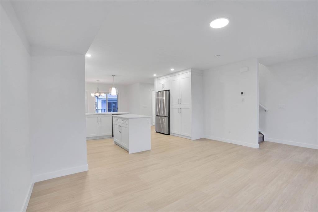 The second floor offers a bright, open-concept layout with a stunning kitchen featuring elegant finishes and ample counter space. The adjoining dining and living areas are perfect for gatherings, while a convenient 2-piece bath completes the level.
