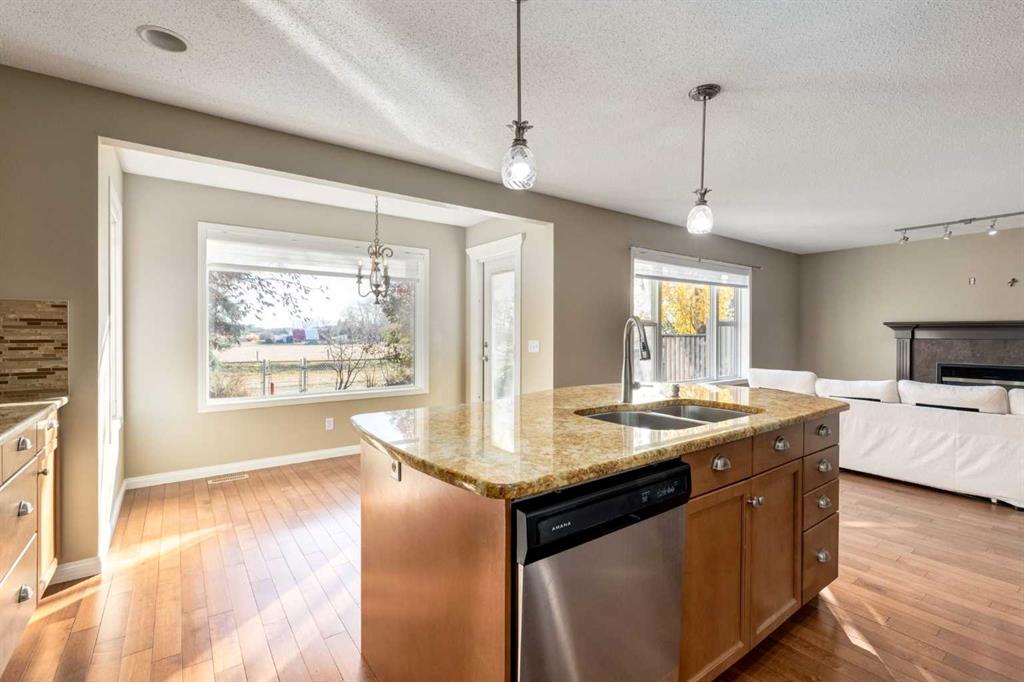 Welcome to this incredibly well-maintained family friendly home offering comfort and functionality. Perfectly positioned on a quiet street and backing directly onto a walking path, this property provides both privacy and easy access to the community’s natural surroundings. The backyard is a true highlight — showcasing mature trees, lush green grass, and an expansive deck ideal for morning coffee, weekend barbecues, and gathering with family and friends. Inside, you are met with fresh paint throughout the home while the front living room provides large vaulted ceilings and a welcoming atmosphere for relaxation and connection, with enough versatility to include a formal dining area if desired. A separate family room on the main level offers another warm gathering space, complete with a stunning tile-surround fireplace and mantle that sets the tone for cozy evenings at home. The heart of the home is the inviting kitchen, thoughtfully designed with new granite countertops, a central island with breakfast bar seating, a corner pantry, and stainless steel appliances. The open-concept layout flows seamlessly into the bright eating nook, framed by windows that overlook the peaceful backyard and allow direct access to the deck for effortless entertaining. Convenience is at the forefront of the main level design, including a dedicated laundry room equipped with ample cabinetry, a sink, and hanging racks—helping keep everyday tasks organized and efficient. The main level is complete with a 2pc powder room and functional mudroom space. Upstairs, the primary retreat delivers a serene escape with a walk-in closet and a 4-piece ensuite featuring a private water closet, standalone shower, and a soothing soaking tub. Two additional well-sized bedrooms and a full 4-piece bathroom complete the upper level, offering comfort for all family members. The fully finished basement offers brand new flooring and expands the living space even further. Here you’ll find a large family room anchored by another beautiful fireplace with a tasteful tile surround, perfect for movie nights or game days. An adjacent recreation area provides the flexibility for a home gym, playroom, or hobby space—whatever best suits your lifestyle. A spacious additional bedroom and a 3-piece bathroom make this level functional and private for guests or older children. Additional features include air conditioning! From the bright and thoughtfully designed interior to the tranquil outdoor setting, this home has been carefully maintained and offers exceptional space to live, relax, and grow. Don’t miss the opportunity to make it yours!