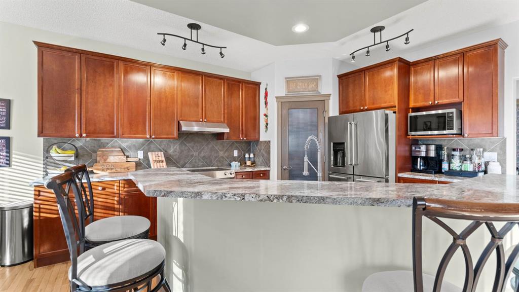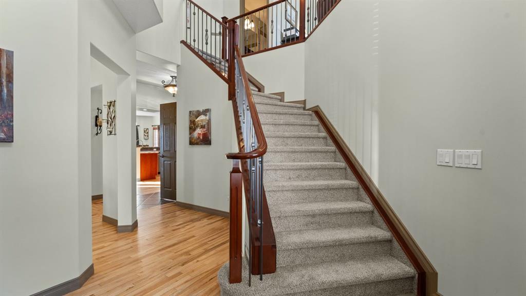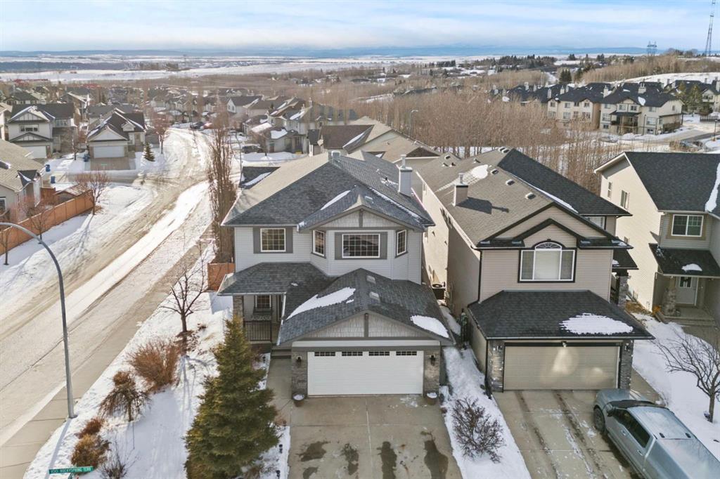 Welcome to this beautifully maintained two-storey home, ideally situated on a desirable corner lot in the highly sought-after community of Rocky Ridge. Offering 2,420 sq ft of above-grade living space plus an additional 1,113 sq ft in the fully developed walkout basement, this home delivers exceptional space, comfort, and versatility for today’s modern family. The main level features a bright and open-concept layout with rich hardwood flooring and large windows that flood the home with natural light. The spacious living room is anchored by a cozy fireplace with custom surround and built-in niches, creating a warm and inviting focal point. Adjacent is a generously sized dining area, perfect for hosting family gatherings and entertaining guests. At the heart of the home is the thoughtfully designed kitchen, showcasing a huge central island, stainless steel appliances, and ample cabinetry. A walk-through corner pantry offers seamless flow to the mudroom and garage, while the sunny breakfast nook provides the perfect spot for casual meals and everyday living. A convenient main-floor laundry room and a stylish powder room complete this level with functionality and flair. Upstairs, you’ll find three spacious bedrooms, including a beautiful primary retreat designed for relaxation. The primary bedroom features large windows, soft natural light, and a tranquil atmosphere, complemented by a luxurious ensuite with dual vanities, a jetted tub, and a separate shower — your own private spa-like escape. The additional bedrooms are well-sized and versatile, ideal for children, guests, or a home office. A standout feature of the upper level is the expansive bonus room, offering a perfect space for movie nights, a play area, or a secondary living room. With vaulted ceilings, large windows, and an open feel overlooking the main floor, this space adds incredible flexibility and family-friendly functionality. The fully developed walkout basement extends the home’s living space with a generous recreation area, a fourth bedroom, and a full bathroom, making it ideal for guests, teens, or a private home office. Large windows and direct access to the backyard ensure this level is filled with natural light and feels bright and welcoming — a rare and highly desirable feature. Outside, enjoy your beautifully landscaped and fenced backyard, complete with a raised deck off the main level and a lower patio, offering multiple outdoor spaces to relax, entertain, and enjoy Calgary’s seasons. Not to mention the gorgeous mountain views! The corner lot provides additional privacy and yard space, while the mature trees and thoughtful landscaping create a peaceful outdoor retreat. Additional highlights include a double attached garage, abundant storage throughout, and a prime location close to top-rated schools, parks, pathways, and easy access to major routes and amenities. This is a rare opportunity to own a spacious, well-appointed family home in one of northwest Calgary’s most desirable communities.