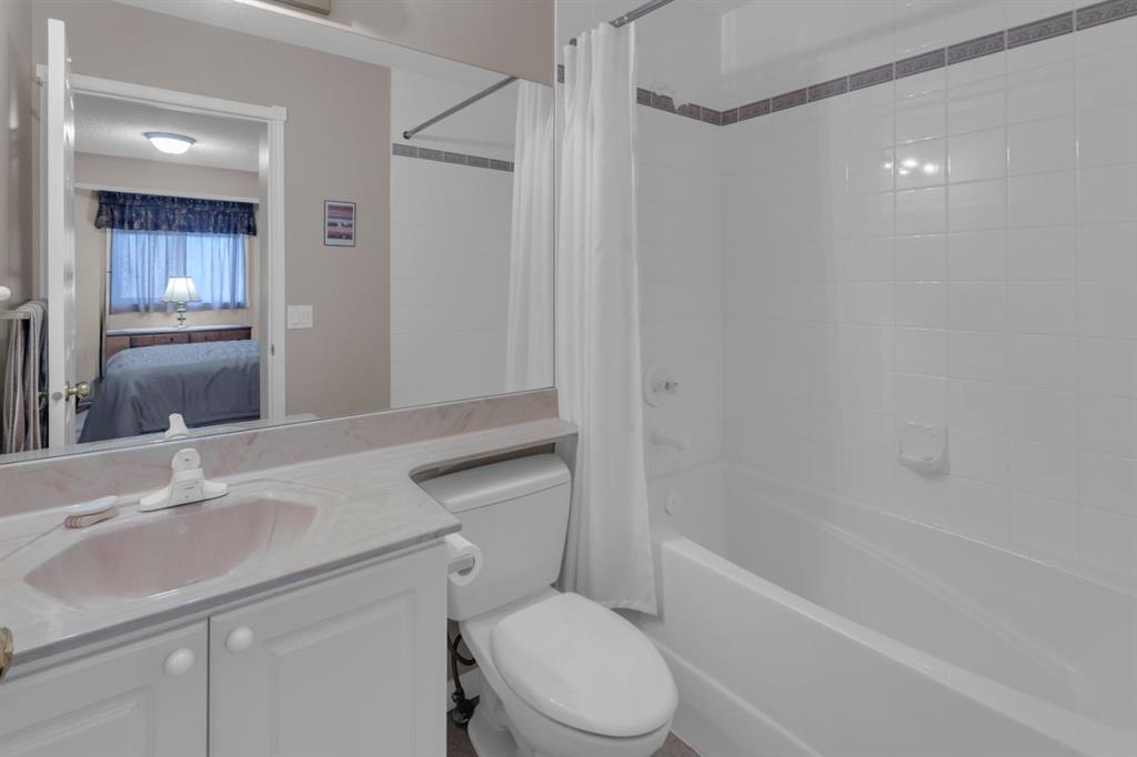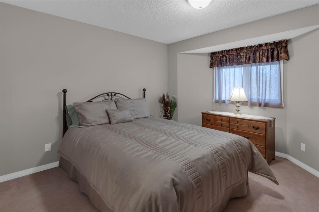 OPEN HOUSE SUNDAY JANUARY 11, 2:00-4:00 P.M. Welcome to this beautifully maintained two-bedroom condo townhome nestled on a quiet green space with a coveted double attached, insulated garage. As you approach from the front, you’ll appreciate the clean curb appeal and the convenience of direct garage access into your home. Step through the front entry and into a bright, open-concept main level where upgraded carpet and underlay flow throughout, adding comfort and quality. The spacious living room is truly impressive with soaring 20-foot vaulted ceilings, a cozy gas fireplace, and large windows that flood the space with natural light. The kitchen has been thoughtfully updated with new cabinet doors and drawers, a convenient pantry for extra storage, and plenty of counter space, while the adjacent dining area overlooks the private green space beyond. The main-floor laundry and two-piece bathroom provide excellent convenience. Step outside through the patio doors onto your extended and permitted 12′ x 9′ back deck, complete with a gas line for your BBQ—an ideal spot for entertaining or unwinding while enjoying the serene, treed backdrop.