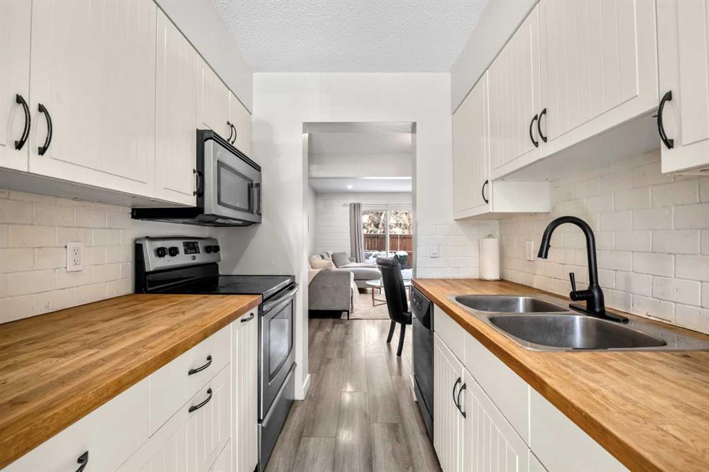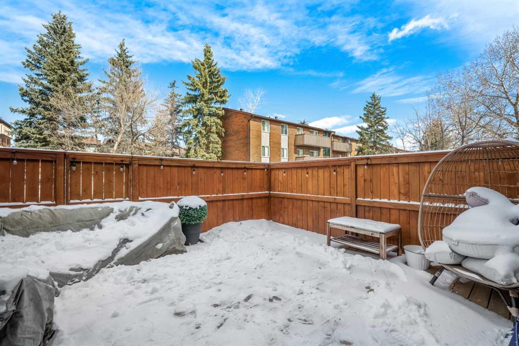 This home truly stands out as one of the most tastefully updated, clean, and modern townhouses in its class. An exceptional opportunity, this 2-bedroom unit features one of the best layouts in the complex, with over 1600 sq. ft. of living space, complete with a rare main-floor powder room and low condo fees. With a fully finished basement and a private fenced yard, this pet-friendly home is ideal for families, first-time buyers, or investors. The condo fees are among the lowest in the city, thanks to outstanding management. The timeless kitchen welcomes you with butcher block countertops, stainless steel appliances, and white cabinetry, offering ample storage and prep space. Vinyl plank flooring runs throughout the entire home, enhancing the bright and open feel while creating a clean, modern, and cohesive look. The spacious living area is both stylish and inviting, featuring a shiplap accent wall, a cozy electric fireplace, recessed pot lights, and a dedicated dining area, making it the perfect space for everyday living and entertaining. Upstairs, you’ll find two large bedrooms with generous windows, a sizable linen closet, and an updated 4-piece main bathroom. The fully finished lower level provides excellent additional living space with a large family room, a 4-piece bathroom, and a laundry room with extensive storage in the utility room. Outside, the private fenced yard features a spacious updated deck, perfect for relaxing, entertaining, or enjoying outdoor living. There is an assigned parking stall close to the front door, along with ample visitor parking and additional stalls available for rent through the condo association. Other notable updates include a new furnace and hot water tank (2024), vinyl windows and front door (2022), LED recessed lighting (2024), and a new pressure-treated deck (2025). Residents also enjoy fantastic complex amenities, including a recently renovated heated outdoor swimming pool with lockers and full-service bathrooms, a recreation hall with a pool table, dartboard, small kitchen, and seating, as well as tennis courts that can also be used for pickleball. Located in the desirable community of Canyon Meadows, you’ll have access to excellent schools, sports fields, playgrounds, and nearby recreation at the Canyon Meadows Aquatic & Fitness Centre, along with the natural beauty of Fish Creek Provincial Park and convenient transportation routes. This is an exceptional opportunity you don’t want to miss. For a full experience, click on the 3D tour.