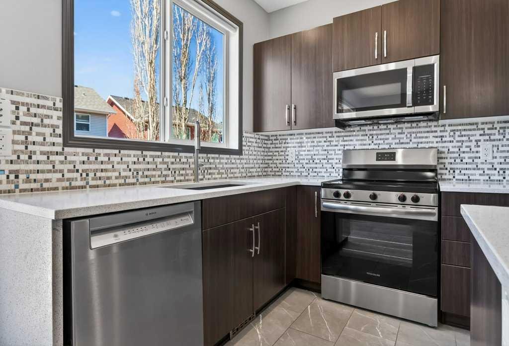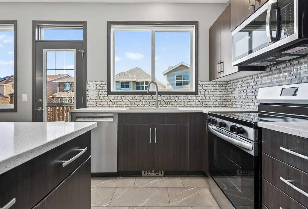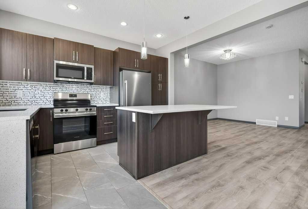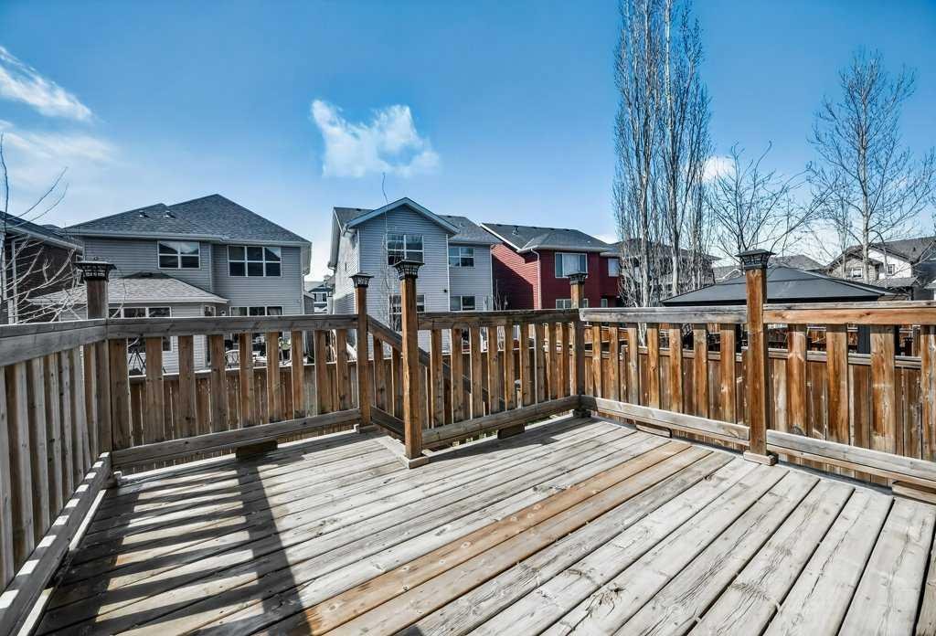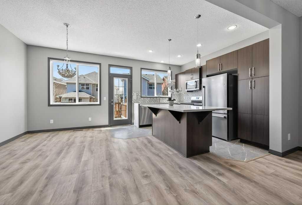 **OPEN HOUSE, SAT MAY 2ND/ 1:00 PM – 4:00 PM** Nestled on a quiet cul-de-sac in the highly sought-after lake community of Auburn Bay, this immaculate home blends comfort, convenience, elegance, and practicality. Ideal for families, professionals, first-time buyers, and investors alike, it offers a thoughtfully designed open-concept main floor that welcomes you with a spacious tiled foyer—perfect for keeping coats and shoes organized while greeting guests in style. The functional layout provides generous space for both living and dining areas, making everyday living and entertaining effortless. The contemporary kitchen is a true highlight, featuring sleek quartz countertops, a stylish mosaic backsplash, stainless steel appliances, and a central island that invites gathering. A large window fills the space with natural light, creating a bright and inviting atmosphere. Upstairs, you’ll find a versatile bonus room—ideal as a reading nook, home office, playroom, media lounge, or yoga space. The generous primary suite offers a walk-in closet and a beautifully appointed 3-piece ensuite with a large shower and quartz finishes. Two additional well-sized bedrooms and a full 4-piece bathroom complete the upper level. Significant updates over the past two years enhance both style and functionality, including new laminate flooring on the main level (excluding the bathroom), new carpet, updated appliances (dishwasher, refrigerator, stove/oven, microwave/hood fan), LED lighting throughout, bathroom vanities and faucets, a new dryer, laminate/tiled flooring and fresh paint completed in 2026.Step outside to enjoy the fully fenced, west-facing backyard featuring a sunny deck—perfect for outdoor relaxation and entertaining. The single attached garage adds everyday convenience and is especially appreciated during the winter months. This exceptional home is ideally located within walking distance to schools via a safe pathway with no roads to cross, and is close to playgrounds, the lake, shopping, dining, and the Alberta Health Campus. Lake membership provides year-round access to Auburn House, the lake, parks, and a variety of community programs-offering a lifestyle that truly sets this home apart. Book your private showing today!