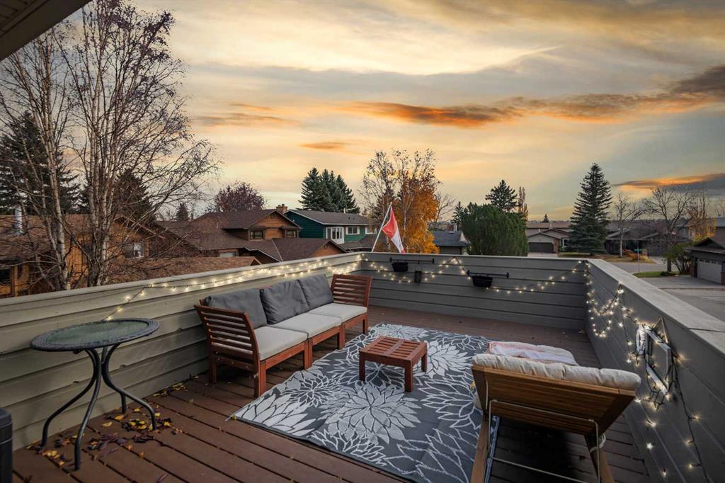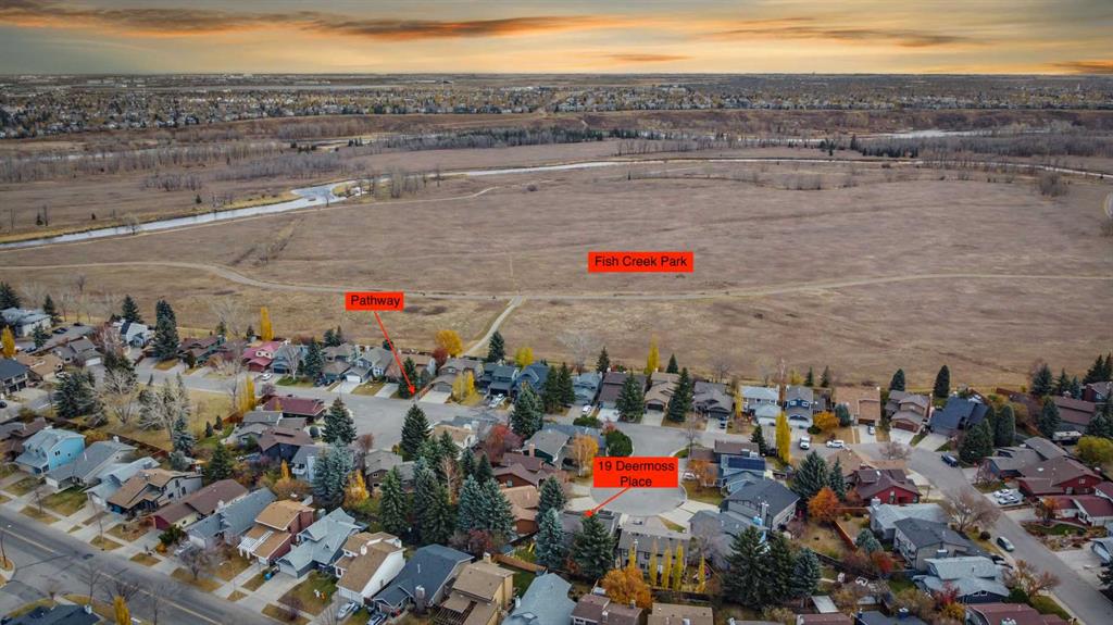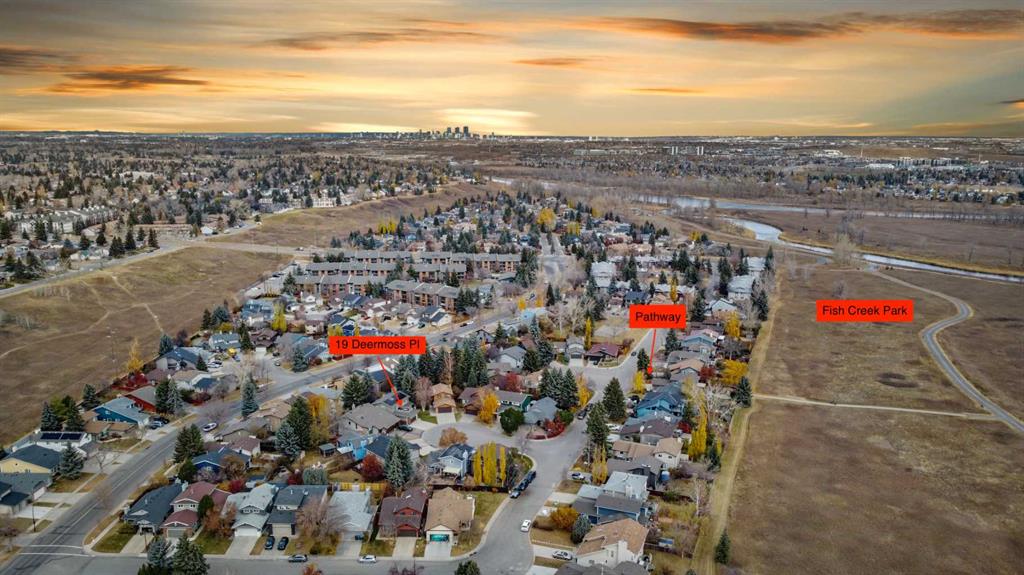 Welcome to 19 Deermoss Place SE, a WELL-MAINTAINED two-storey home, perfectly located on a QUIET CUL-DE-SAC in the heart of Deer Run. Step inside to find a bright and welcoming main floor with UPDATED FLOORING and a spacious living room featuring large bow windows (updated in 2024) that fill the space with natural light. The kitchen is a real highlight, with a quality Jenn-Air GAS OVEN, plenty of cabinets, and a nice view of the backyard. Next to the kitchen, the cozy family room has a GAS FIREPLACE and opens directly onto a back deck, perfect for relaxing or hosting summer BBQs. Upstairs, there are FOUR GOOD-SIZED BEDROOMS, including the primary suite with a 4-piece ensuite, walk-in closet, and access to a LARGE ROOFTOP DECK, a great spot the owner’s retreat. The other three bedrooms and a full 4-piece bathroom complete this level, providing lots of room for family and working space. The FINISHED BASEMENT adds even more space, with a cozy family room, an extra bedroom, and a large recreation area, ideal for workouts, hobbies, or a playroom. This home has many updates, including SOLAR PANELS (installed May 2023), NEW WASHER AND DRYER (2024), and UPGRADED ATTIC INSULATION (R56 in 2018). It also has two furnaces and two hot water tanks for better comfort and efficiency. Enjoy the quiet of cul-de-sac living, just minutes from parks, schools, and all the amenities Deer Run has to offer. Best of all, FISH CREEK PROVINCIAL PARK IS ONLY 2 MINS AWAY, perfect for walking, biking, and spending time outdoors.