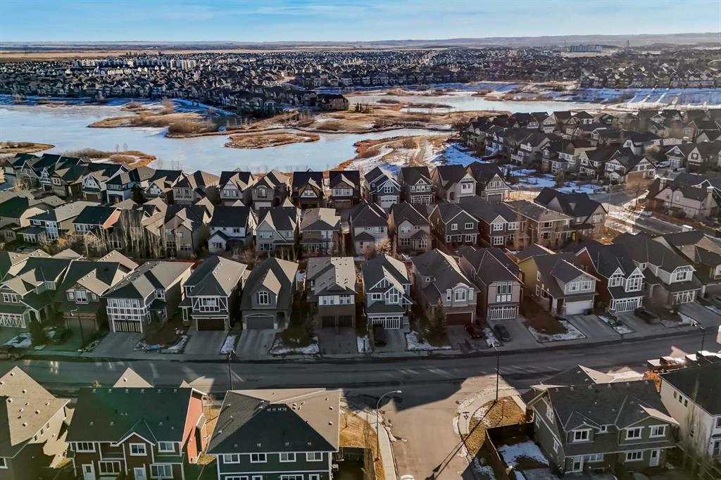 Welcome to this beautifully finished home in the highly desirable lake community of Mahogany! Located just blocks from the stunning 22-acre wetlands, schools, playgrounds and the lake—an ideal setting for families and outdoor enthusiasts. Thoughtfully upgraded throughout, the home features modern lighting, stylish countertops, and built-in fireplace. The main floor offers one of the most sought-after layouts, complete with two inviting sitting areas, a spacious dining room perfect for gatherings, and a huge kitchen island that serves as the heart of the home. Upstairs, the serene master retreat provides a peaceful escape with its walk-in closet and luxurious 5-piece ensuite. Two additional bedrooms, a bathroom and upstairs laundry complete the upper level, providing flexible space for family or guests. The newly finished basement (2024) enhances the home with a bright rec room/flex space, an additional bedroom, and a contemporary 3-piece bathroom—ideal for hosting visitors, hobbies, or movie nights. Outside, enjoy sunny afternoons on the oversized composite deck, perfect for entertaining or relaxing. Additional value comes from the oversized heated garage with 8′ door. Full roof replacement completed in 2021 with hail-resistant shingles—an upgrade that offers peace of mind. With its thoughtful upgrades, functional layout, and exceptional location near natural amenities and community conveniences, this home presents an outstanding opportunity in one of Calgary’s most sought-after neighborhoods. Call your favorite realtor, and come see this wonderful family home today!