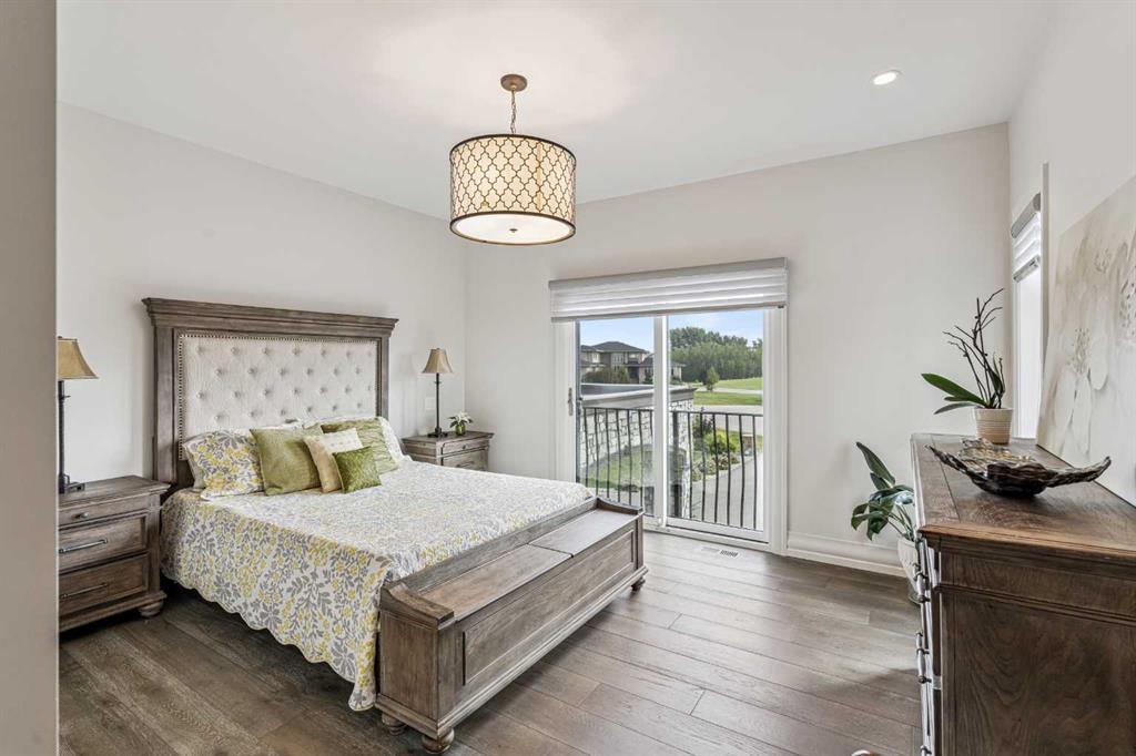 The stunning primary retreat offers the ultimate in privacy and relaxation, complete with a gas fireplace, private office, direct deck access, and a spa-inspired ensuite featuring a soaking tub, dual vanities, heated floors, and a spacious walk-in closet with custom built-ins and makeup vanity.