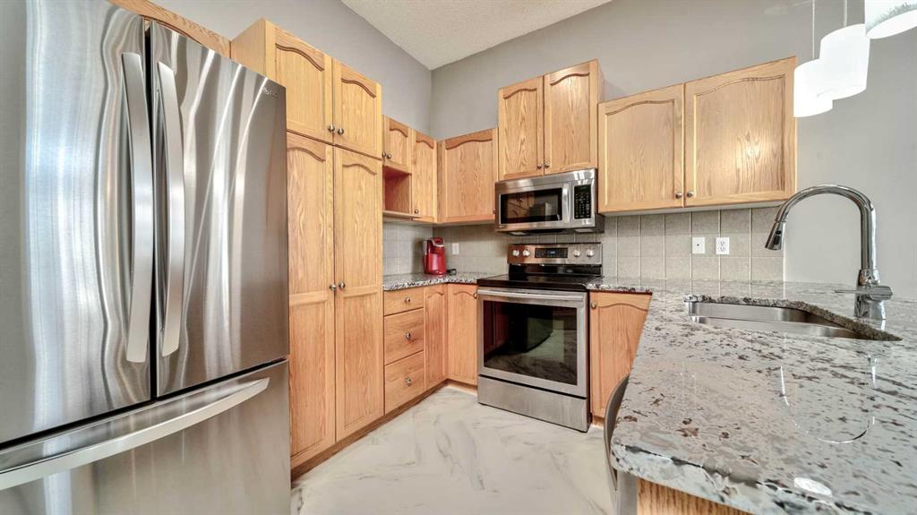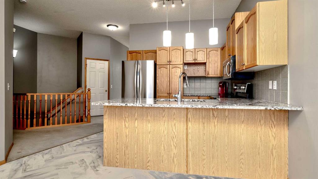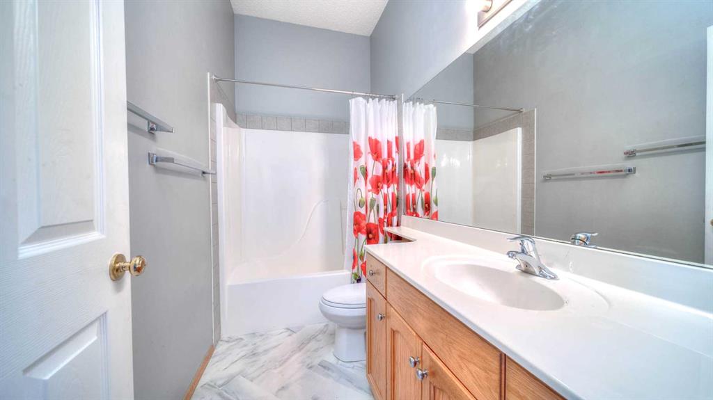 Fabulous 3 bedroom, bungalow villa with double attached garage in McKenzie Towne! Superb main floor plan featuring soaring 10 ft. ceilings. Step into an inviting foyer that opens to a spacious living room with large windows and sunny, south exposure. The kitchen offers an abundance of cabinetry, breakfast bar, granite countertops, newer stainless appliances and open to dining room overlooking the back deck. Two generous sized bedrooms grace the main floor including the master, complete with walk-in closet and 3 piece ensuite bath. The fully finished lower levels includes a huge recreation room with corner gas fireplace, third bedroom, 4 piece bath and loads of storage space. Enjoy the convenience of a main floor laundry room, central air-conditioning and double attached garage. Perfectly located across from visitor parking and a short walk to community parks & pathways, schools and shopping. A wonderful place to call home!