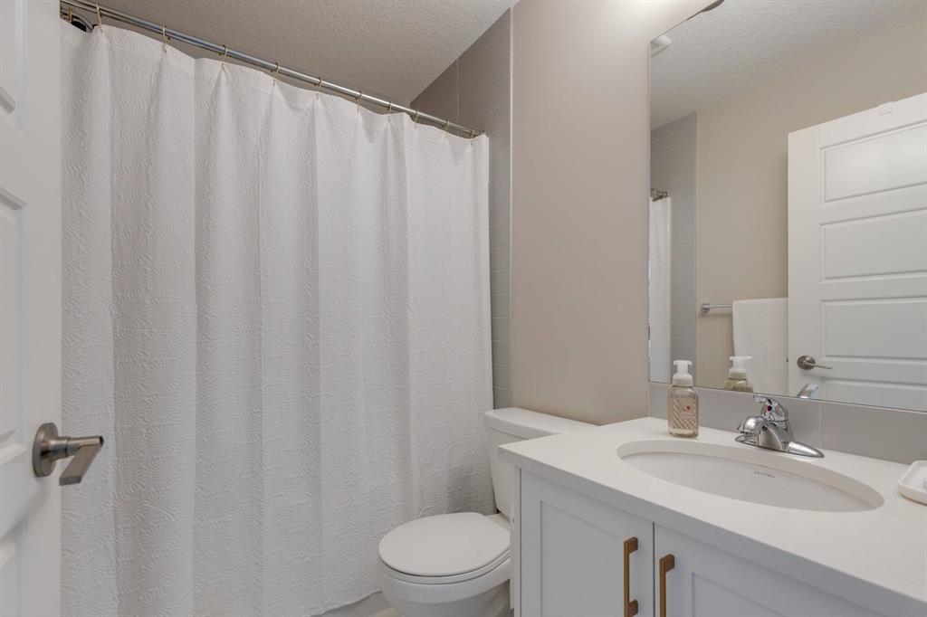 With light pouring in from every angle, this impeccably designed 2020 constructed corner-unit townhouse feels fresh, bright and instantly inviting. In collaboration with a professional designer, every finish from the classic white kitchen to the quartz countertops was thoughtfully selected for timeless style and everyday comfort. The open concept main floor offers a spacious living space with room for a desk nook for working from home, a bright dining area for weeknight meals, and plenty of space to relax together. A stylish kitchen with stainless steel appliances including a French door fridge, and a striking tile backsplash beckons you to try out new recipes. Step outside to your private balcony for your morning coffee, evening grilling, or simply enjoying the fresh air, sheltered by a privacy wall. Upstairs, both bedrooms offer double closets and private ensuites, providing comfort and convenience for guests or a roommate. Laundry is neatly tucked into the upper hallway. The attached tandem double garage provides parking plus generous storage space for seasonal gear. With 9’ ceilings on the main floor, a neutral colour palette, and meticulous upkeep, this move-in ready home feels airy and welcoming. Located just minutes from the shopping at Cross Iron Mills, as well as grocery stores, restaurants and pubs. Enjoy quick access around the city from Stoney and Deerfoot Trail. There are pathways, parks, and playgrounds nearby to explore. This home blends convenience with lifestyle and is ideal for a first-time buyer, young couple, small family or busy professional. Book your private tour and see why this is the perfect fit.