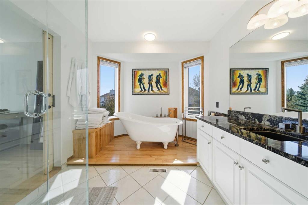 This immaculately kept home truly stands out offering over 3,500 sq. ft. of functional living space in the highly desirable community of Scenic Acres, with quick access to Nose Hill Park, Crowchild Trail, Stoney Trail, schools, and shopping. Recent updates make this home feel fresh and modern, including flat ceilings, fresh interior paint throughout, brand-new toilets (installed just last month), stylish barn doors in the primary ensuite and walk-in closet, and a relaxing hot tub for year-round enjoyment. The main floor’s open concept is ideal for entertaining. The spacious kitchen with breakfast nook flows seamlessly into the living room featuring a cozy fireplace and custom built-ins, all surrounded by large windows that fill the home with natural light. A formal dining room and a separate sitting area create the perfect spaces for both family gatherings and quiet evenings. Convenient main-floor laundry and a 2-piece powder room complete the level. Upstairs, you’ll find a generous primary suite with large WIC and an ensuite featuring a charming claw-foot tub, plus two additional bedrooms and another full 4-piece bath. The walkout basement expands your living area with a large recreation room filled with games for al ages, another room that could be used as a bedroom, a large wet bar, a 2-piece bath, and abundant storage. Outside, enjoy a low-maintenance landscaped yard with no grass to cut complete with an irrigation system, plus a double attached garage with epoxy flooring. Additional upgrades like rubber roofing and solar panels add long-term durability and energy efficiency. This home checks every box….beautifully updated, thoughtfully maintained, and ready to move right in. Book your showing today!