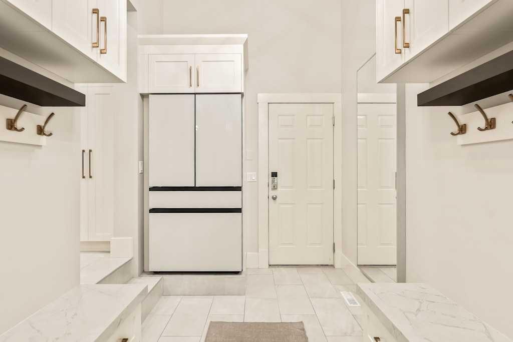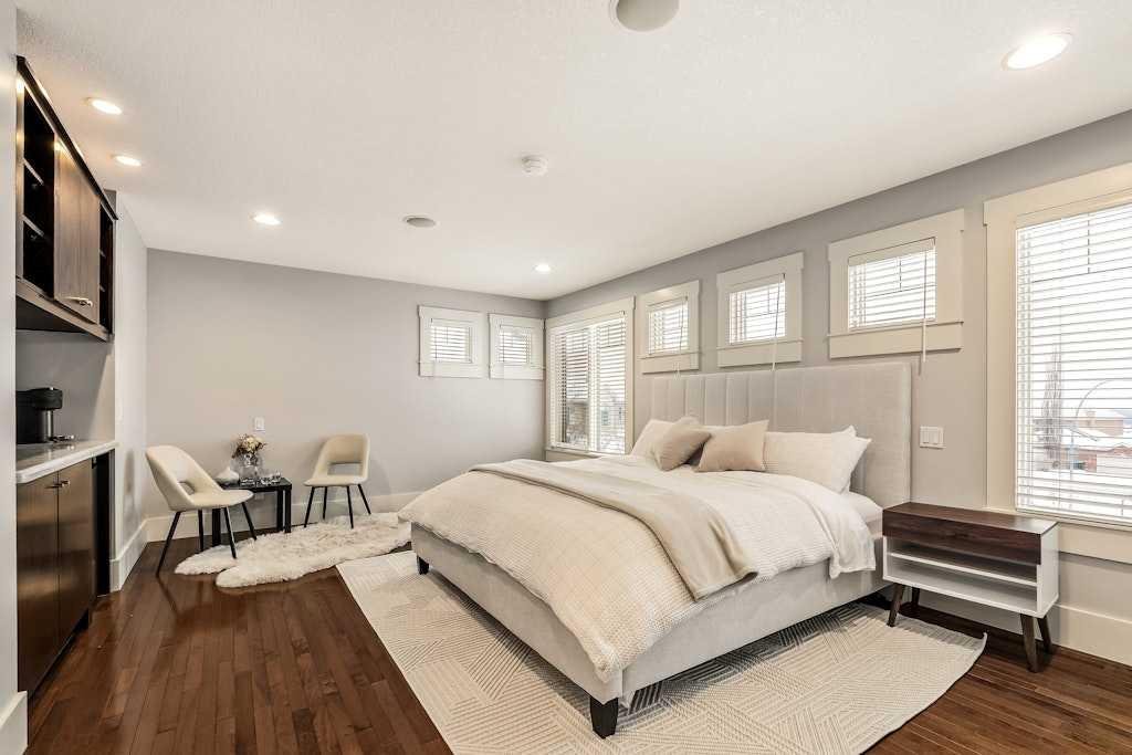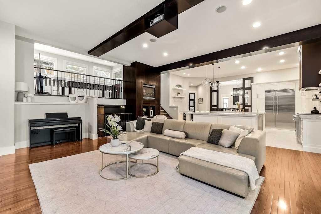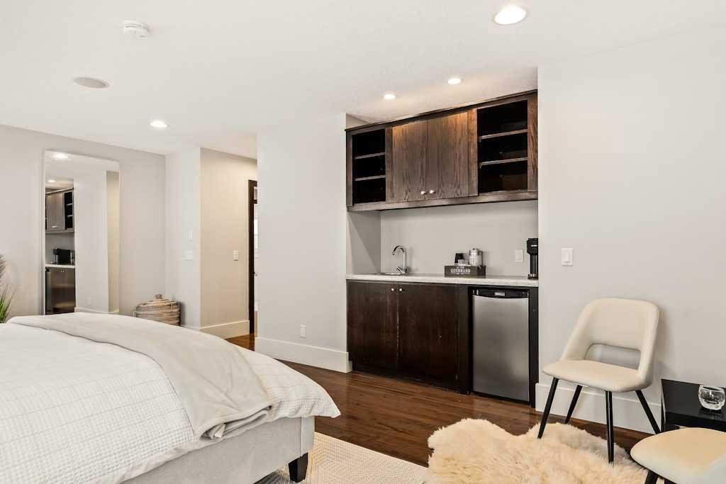 Extensively renovated and impeccably appointed, this architecturally striking five-level split is positioned on a quiet cul-de-sac in Signal Hill, offering almost 3,500sqft above grade and over 5,500sqft total, on a multi-tiered pie shaped lot with multiple outdoor living areas and mountain views. The heart of the home is a the huge custom created kitchen which has been thoughtfully renovated and designed with extensive built-ins, premium stone countertops with a 2.5″ mitre edge, and a high-end appliance package including a 48″ Monogram gas range, Miele dishwasher, separate built-in JennAir refrigerator and freezer units. A dedicated wine bar with custom cabinetry, new countertops, built-in wine fridge, floating shelves, and hanging wine rack seamlessly connects the kitchen to the dining and living spaces, making it ideal for both everyday living and entertaining. The main living areas are enhanced by custom millwork, updated lighting, and a new fireplace with tile surround, while the dining room features custom built-in cabinetry and lighting. The main floor also features a large private office, tastefully designed powder room, the spacious welcoming foyer, huge mudroom and access to the oversized attached garage. Ceiling heights add to the sense of scale, with approximately 13ft ceilings in the entry, 11ft ceilings on the main level, and 9ft ceilings in the basement. The upper level is anchored by a spacious primary retreat with coffee bar, two walk-in closets full of built-ins, access to the rooftop patio showcasing mountain views, and the ensuite complete with oversized double headed steam shower, dual vanity, heated tile, extra deep soaker tub and designated hair/makeup vanity. Two spacious additional bedrooms, connected by a jack-and-jill bathroom, as well as one of two laundry rooms complete this level. The basement rec room is wide-open and large enough to accommodate the needs of almost anything you can imagine, while still offering a designated gym space, arts&craft room, teen bedroom with its own hangout space, full bathroom, second laundry room and seemingly endless storage space. Practical upgrades include; Hunter Douglas blinds throughout, a radon mitigation system installed in 2022, a new furnace (2024), recently refinished roof top balcony with new TufDek waterproof vinyl decking and the addition of a new 8’ x 8’ patio door enhance flow to the huge outdoor space off the upper living/flex room. Outdoor living is a standout feature, offering multiple exterior spaces including a front porch with gas hookup, oversized entertaining deck, rooftop deck, fenced grass yard, and dedicated dog run. Located close to schools, parks, shopping, and westside amenities, this home represents a rare opportunity to own an extensively renovated, move-in-ready property in one of Calgary’s most established communities.