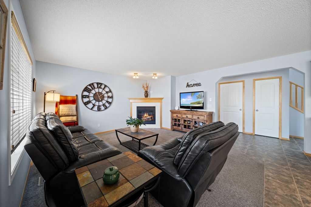 Inside, the home continues to impress. The kitchen is in excellent condition with flawless cabinetry, tiled flooring, and stainless-steel appliances (Samsung and Bosch), a corner pantry, offering both functionality and timeless style. Relax and unwind in the cozy and inviting living room right next to the kitchen, complete with a tiled natural gas fireplace. Upstairs, you’ll find two generous-sized bedrooms and a spacious primary retreat with a stylish barn door leading into the large ensuite complete with soaker tub and separate shower. The bright bonus room highlighted by vaulted ceilings—perfect for family living – completes this truly stand-out level of the home.