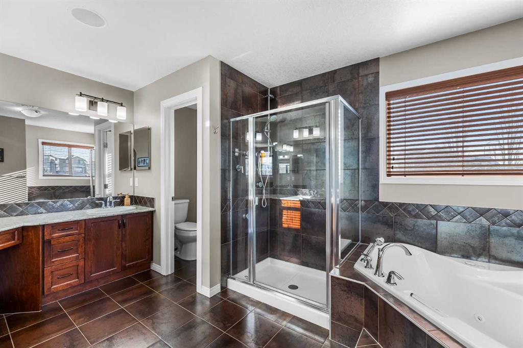 Welcome to 190 Sage Bank Grove, ideally located on a quiet street, situated on a pie lot in the sought-after community of Sage Hill. Lovingly cared for & thoughtfully updated. Offering over 3,400 sq ft of developed living space, this impressive home features 5 bedrooms (6 if you count the gym), 3.5 bathrooms, main-floor office, vaulted second-floor bonus room, & a fully developed entertainment basement-all complemented by an oversized double attached heated garage! An exceptional & functional layout with space for the entire family. From the moment you enter, you’re greeted by a grand open foyer with soaring ceilings & hardwood flooring. Just off the entrance is a private office, ideal for working from home or a tucked away playroom! The open-concept kitchen & living area is both functional & show-stopping. The chef-inspired kitchen boasts granite countertops, a large centre island, wine rack & newer stainless steel appliances (all new except for the dishwasher) including an induction cooktop, range hood fan, built-in double oven, & refrigerator, along with a spacious walk-through pantry with extensive shelving. Extended built-in cabinetry beside the dining area works perfectly as a serving area, coffee nook or bar setup. The living room is warm & inviting with a gas fireplace & built-in speakers, perfect for cozy evenings or entertaining.Step outside to enjoy the sun-filled backyard, featuring professional landscaping, a concrete patio & a stylish pergola with twinkle lights-ideal for outdoor gatherings. Upstairs is thoughtfully designed for growing families. The spacious primary retreat includes a luxurious 5-piece ensuite with double sinks, large shower & a corner tub, a coffee nook, as well as a massive walk-in closet with built-in speakers. Two additional generous bedrooms, a central bonus room with vaulted ceilings & built-ins, a full bathroom & a newly updated laundry room complete the upper level. The professionally builder-developed basement offers incredible versatility with three additional rooms (including a gym with rubber flooring), a full bathroom for guests, ample storage, & a large entertainment area featuring a thoughtfully designed wood-accent bar-perfect for movie nights, hosting, or family gatherings. This home has been extensively cared for with numerous newer & upgraded features, including a newer furnace, central air conditioning, newer roof, eavestroughs & downspouts, garage heater, updated garage door components, newer washer & dryer, & updated smoke detectors, offering peace of mind. The home also features permanent outdoor lighting at the front of the property, adding year-round curb appeal & ease to holiday decor with many color options & designs! A truly one-of-a-kind property with exceptional value, located minutes from parks, new schools, walking trails, ponds, Walmart, Costco, Creekside, Sage & Beacon Hill shopping, as well as quick access to Stoney Trail. A fully upgraded home in an outstanding community-this one shows 10/10
