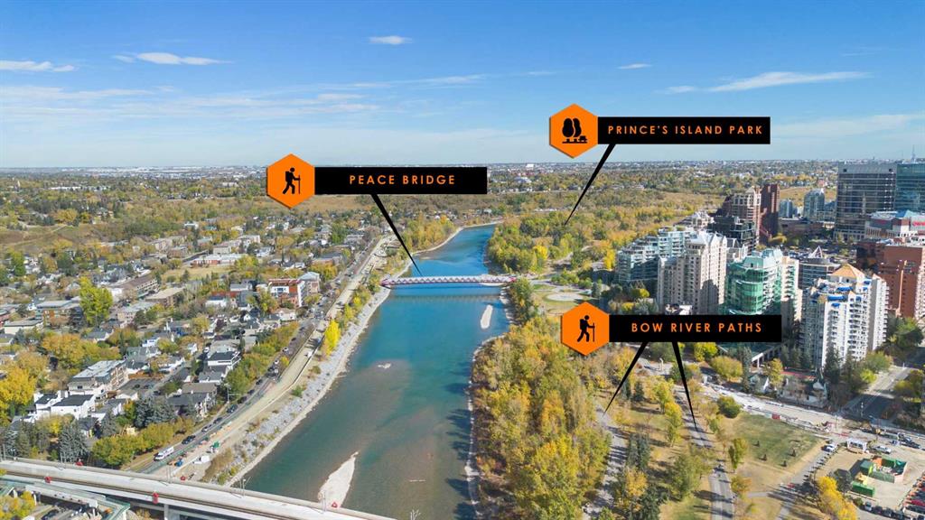 Welcome to Riverwest, where sophistication meets serenity at one of Calgary’s iconic and prestigious addresses in the Downtown West End. This exceptional corner suite spans over 2,000+sq.ft of pure elegance, 2 Bedroom+1 Den /Office ,wrapped in panoramic views of the Bow River, and dazzling city skyline—a rare fusion of natural beauty and urban vibrance. Wake up to breathtaking river views and wind down with city lights dancing on the water—every room in this home offers a front-row seat to Calgary’s finest scenery. Whether you’re sipping your morning coffee on one of the three private terraces, or entertaining guests against a backdrop of sunsets over the river, this home offers a lifestyle that’s as luxurious as it is unforgettable. Step inside and experience refined living with floor-to-ceiling windows that flood the space with natural light. The kitchen is both stylish and functional, featuring granite countertops, custom maple cabinetry, stainless-steel appliances, and a spacious breakfast bar—perfectly integrated with the open-concept dining and living areas to create a seamless space for cooking, dining, and entertaining. The primary suite is a private oasis designed for ultimate relaxation—complete with its own terrace, a walk-in closet, and a spa-like ensuite with a jetted soaker tub, glass shower, and dual vanity. A versatile third bedroom with sweeping views offers the perfect blend of function and style—ideal as a private home office, den, or guest room for the modern urban professional. This home is thoughtfully appointed with hardwood and tile flooring, central A/C, and two titled underground parking stalls for added comfort and convenience. As a resident of Riverwest, you’ll enjoy resort-style amenities including pool, gym, lounge area with ping pong/pool table, daytime concierge and overnight security. Step outside and you’re mere moments from the Bow River pathways, CTrain station, acclaimed restaurants, boutique shopping, and Calgary’s vibrant downtown core.