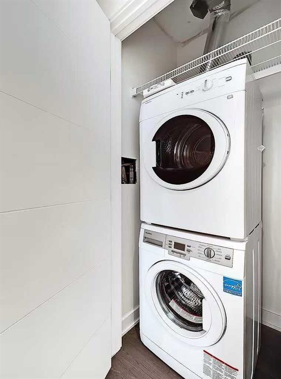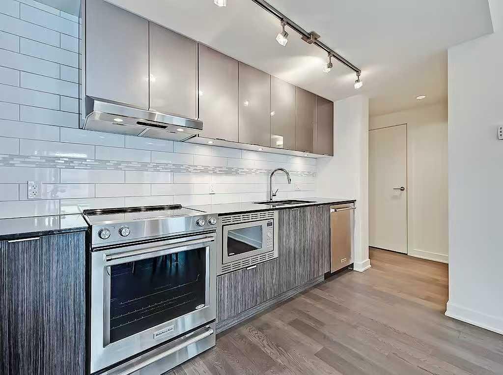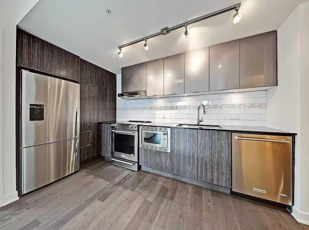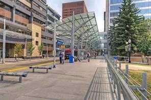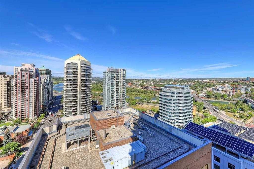 SOUTHWEST-facing 2-bed, 2-bath condo in upscale VOGUE w/ stunning CITY, RIVER & MOUNTAIN VIEWS from the 19th floor! Sun-drenched & open concept, this bright 2-bed/2-bath unit is filled with natural light & has engineered hardwood flooring in the main areas. Two-tone cabinets w/ modern hardware & under cabinet lighting, quartz counters, subway tile backsplash, dual basin undermount S/S sink, & S/S appliances, including a built-in Panasonic microwave, Kitchenaid stove w/ flat cooktop & dishwasher, & a Fisher Paykal fridge can be found in the open kitchen. The open main living area also features painted ceilings, floor-to-ceiling windows, & a sunny balcony w/ gas line for a BBQ & panoramic views. Flanked bedrooms offer extra privacy for roomates or frequent guests as they share no walls with each other. Primary suite features plush carpet, large windows w/ panoramic views, a generous closet, & a 4-pc ensuite w/ hexagon tile floors, modern vanity, quartz counter, undermount sink w/ modern faucet, tile backsplash, & fully tiled tub/shower. The 2nd bedroom also has plush carpet, a generous closet, large windows and quick access to the main 3-pc bath w/ hexagon tile floors, modern vanity, quartz counter, undermount sink w/ modern faucet, & oversized glass shower w/ full height tile. Complete w/ in-suite laundry, titled indoor parking and extra storage in the heated parkade. VOGUE is a high-end building w/ a ton of amenities, including central A/C, an elegant formal lobby, full-time concierge, and 36th floor Sky Lounge complete with fitness centre, billiards, large party room w/ kitchen, studio, & multiple rooftop terraces. Surrounded by parks, transit, the LRT, shopping & more, & within walking distance to the downtown core & all Kensington shops & services – this location offers the best urban lifestyle in the Downtown Commercial Core.