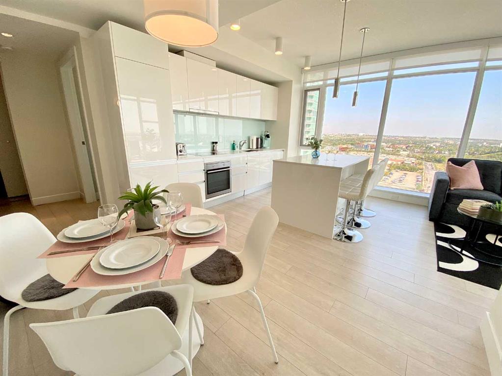 Discover urban luxury in this mint-condition 2-bedroom, 2-bathroom condo in The Guardian’s South Tower, perfectly nestled in Calgary’s vibrant Victoria Park/Beltline. Breathtaking city, river, or mountain views through floor-to-ceiling windows create an inspiring backdrop for young professionals, couples, or downsizers craving a stylish, low-maintenance lifestyle. Move-in ready with optional high-quality furniture included, this turnkey gem eliminates the hassle of setup. Enjoy a rare included parking stall, a modern kitchen with sleek finishes, and access to premium amenities like a fitness center, garden terrace with BBQs, and a social club for effortless entertaining. Steps from downtown, East Village, Stampede Park, and trendy 17th Avenue, you’re at the heart of Calgary’s cultural pulse. Investors, seize the rental potential in this high-demand area! Priced competitively in Calgary’s balanced 2025 market, this condo won’t last—book your private showing today and submit your offer before it’s gone!