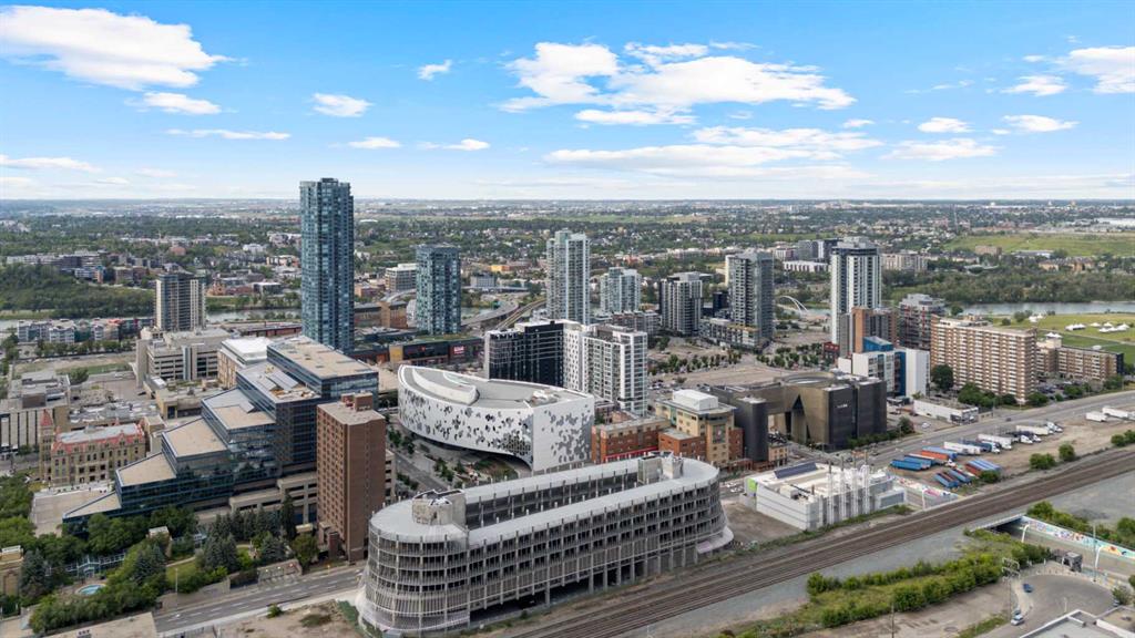 Welcome to your dream urban oasis in the heart of East Village. This stunning 19th-floor, 2-bedroom, 2-bathroom residence showcases breathtaking views of the Bow River and downtown skyline through expansive floor-to-ceiling windows that flood the home with natural light. Sleek laminate flooring throughout enhances the modern, open feel of the space.