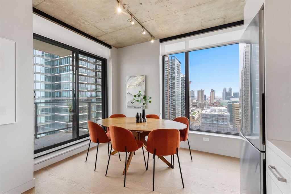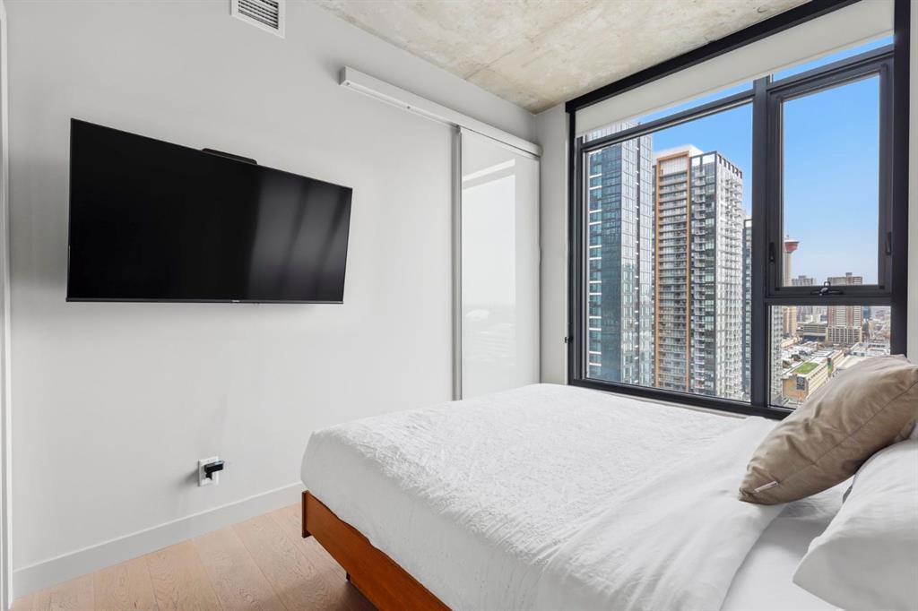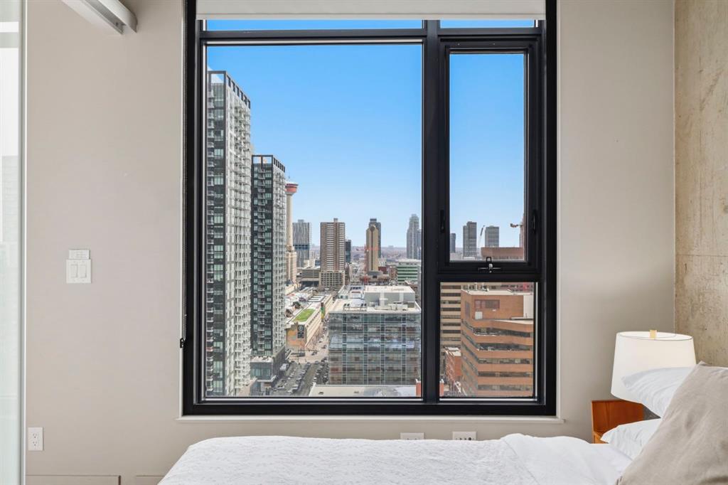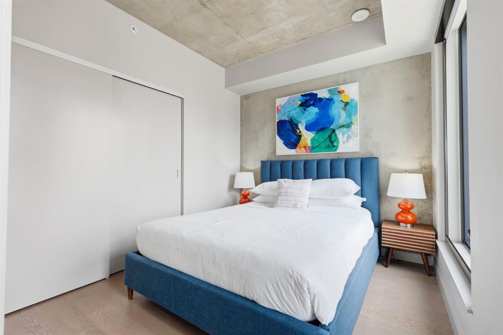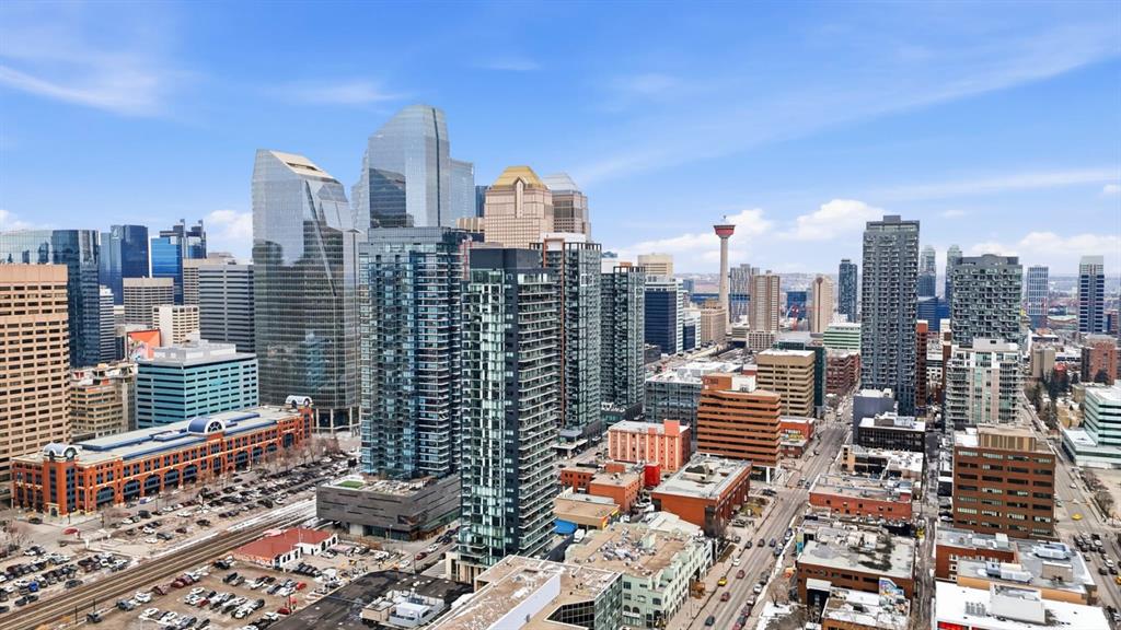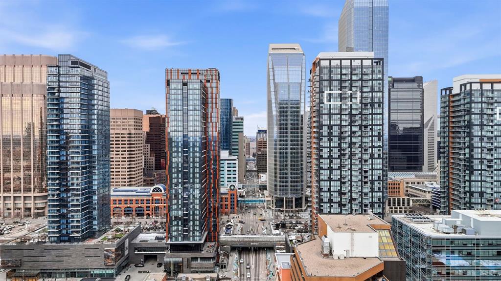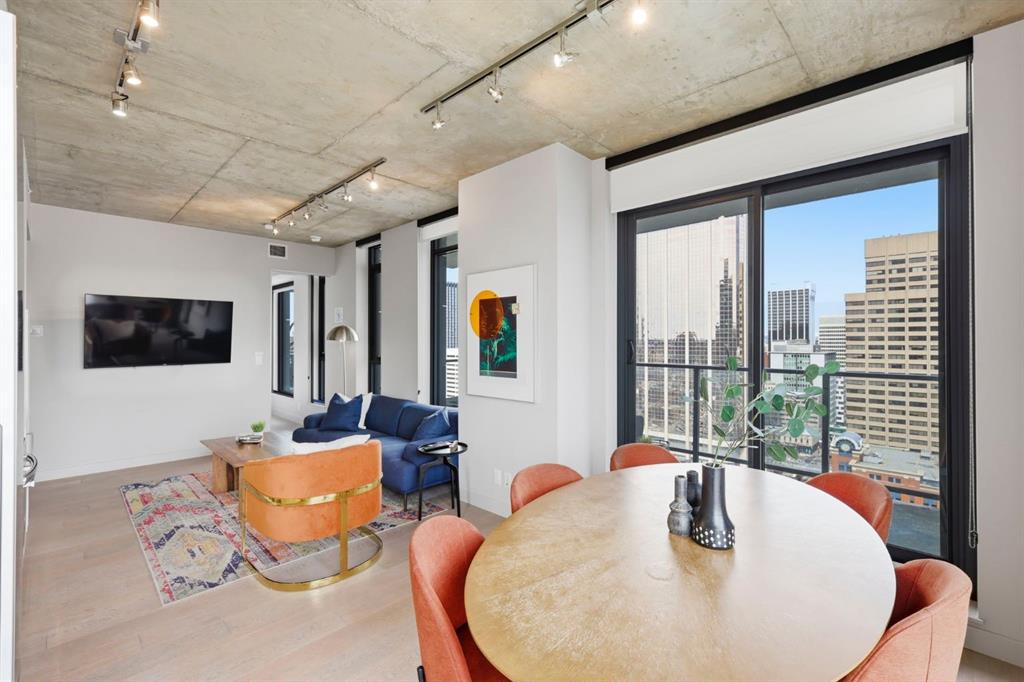 Welcome to 6th and Tenth, where stylish design, elevated living, and exceptional investment potential come together in one of Calgary’s most vibrant locations. Perched on the 19th floor, this striking end unit offers breathtaking panoramic views, enhanced privacy, and an abundance of natural light through dramatic floor-to-ceiling windows. Inside, the space is a true showpiece, featuring a sleek, modern interior with exposed concrete ceilings and feature walls, vinyl plank flooring, and tall ceilings, all creating a sophisticated, loft-inspired feel. The open-concept layout is both functional and beautiful, anchored by a designer kitchen with stone countertops, stainless steel appliances, and a gas cooktop, seamlessly flowing into the living and dining areas. Step out onto the expansive private deck and take in the incredible city skyline and mountain views – the perfect backdrop for morning coffee or evening cocktails. Urban living at its most impressive! Offered FULLY FURNISHED, this is a rare turnkey Airbnb opportunity – ready to generate income from day one or serve as your own luxurious city retreat. Additional features include in-suite laundry, central air conditioning, titled underground parking and titled storage unit. Residents of 6th and Tenth enjoy an exceptional lifestyle with access to premium amenities including a fitness centre, outdoor pool and sky lounge, concierge service, and a beautifully designed social room for entertaining. The building also offers the added convenience of garbage chutes on every floor. Located steps from Calgary’s best restaurants, cafés, shopping, transit, and the Stampede grounds, this is sophisticated inner-city living with unmatched energy, style, and flexibility. Don’t miss out on this amazing opportunity! Click on the 3D tour icon to view the floor plan.