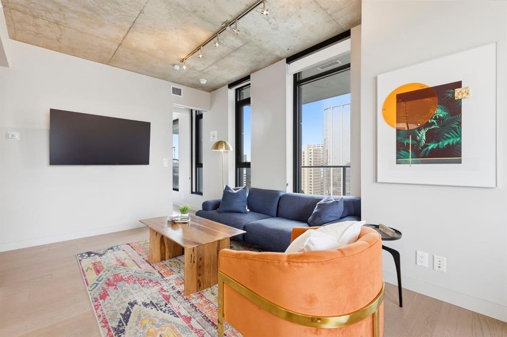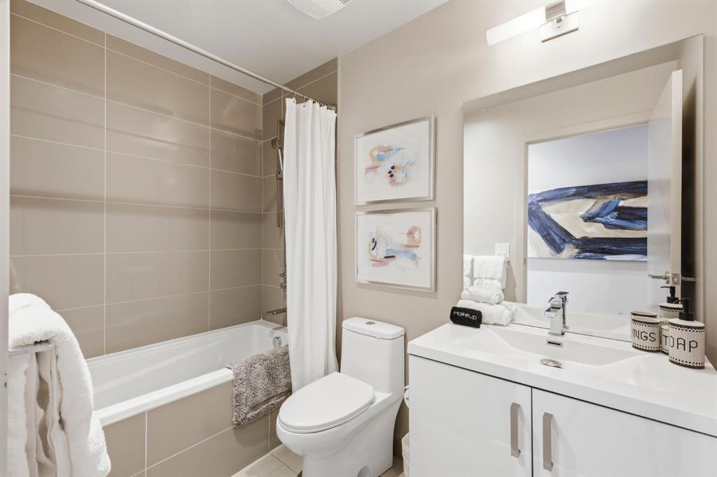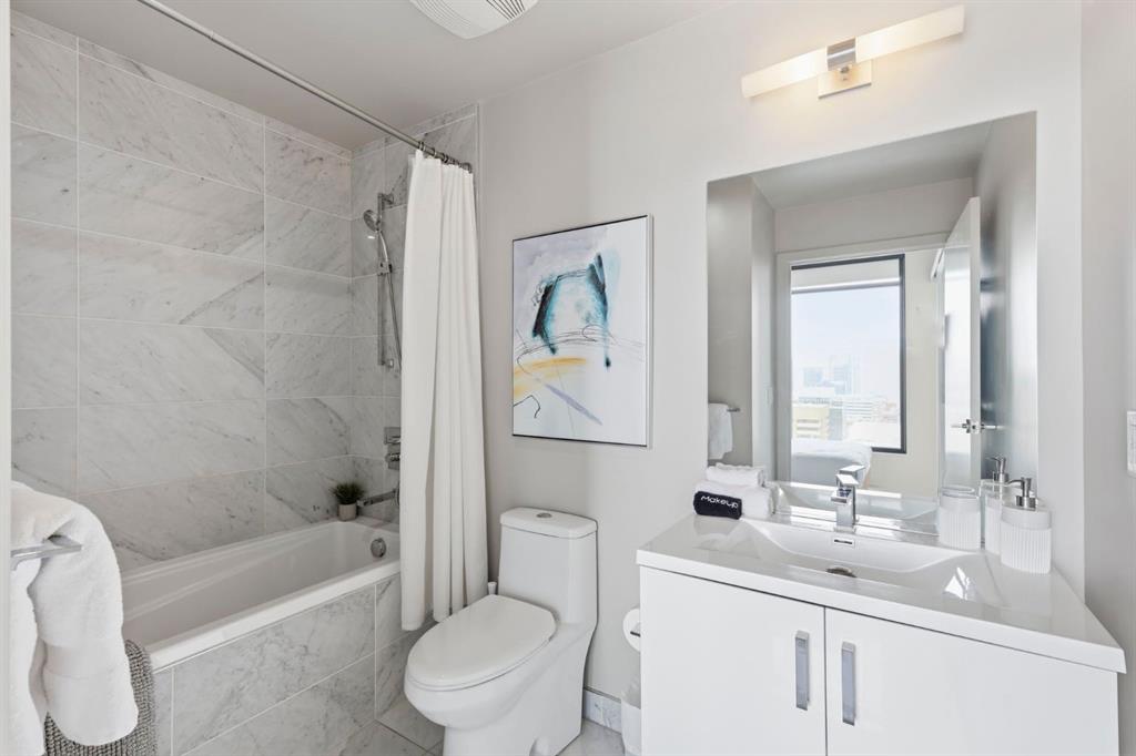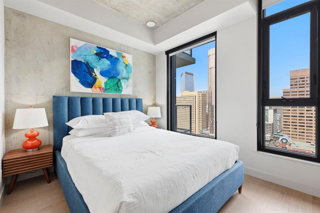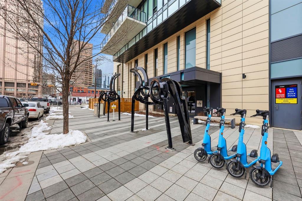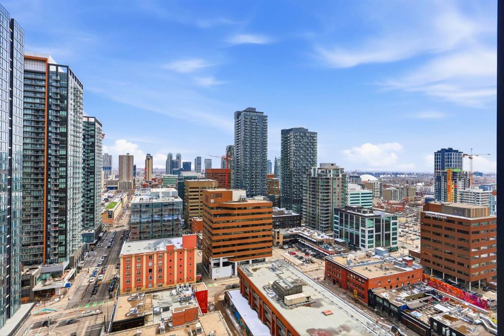 Welcome to 6th and Tenth, where stylish design, elevated living, and exceptional investment potential come together in one of Calgary’s most vibrant locations. Perched on the 19th floor, this striking end unit offers breathtaking panoramic views, enhanced privacy, and an abundance of natural light through dramatic floor-to-ceiling windows. Inside, the space is a true showpiece, featuring a sleek, modern interior with exposed concrete ceilings and feature walls, vinyl plank flooring, and tall ceilings, all creating a sophisticated, loft-inspired feel. The open-concept layout is both functional and beautiful, anchored by a designer kitchen with stone countertops, stainless steel appliances, and a gas cooktop, seamlessly flowing into the living and dining areas. Step out onto the expansive private deck and take in the incredible city skyline and mountain views – the perfect backdrop for morning coffee or evening cocktails. Urban living at its most impressive! Offered FULLY FURNISHED, this is a rare turnkey Airbnb opportunity – ready to generate income from day one or serve as your own luxurious city retreat. Additional features include in-suite laundry, central air conditioning, titled underground parking and titled storage unit. Residents of 6th and Tenth enjoy an exceptional lifestyle with access to premium amenities including a fitness centre, outdoor pool and sky lounge, concierge service, and a beautifully designed social room for entertaining. The building also offers the added convenience of garbage chutes on every floor. Located steps from Calgary’s best restaurants, cafés, shopping, transit, and the Stampede grounds, this is sophisticated inner-city living with unmatched energy, style, and flexibility. Don’t miss out on this amazing opportunity! Click on the 3D tour icon to view the floor plan.