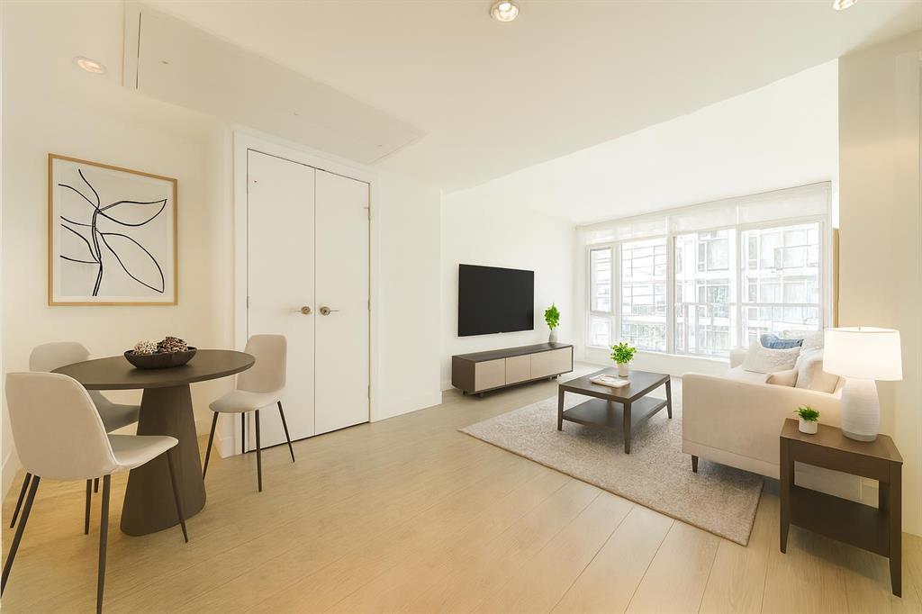 Designed for comfort and style, this thoughtfully laid-out home features contemporary finishes, bright open spaces, and elegant flooring throughout. The kitchen boasts integrated cabinetry, concealing the refrigerator and dishwasher for a seamless look, along with an INDUCTION COOKTOP and a BUILT-IN MICROWAVE—perfect for the modern cook. The open-concept living area flows effortlessly, creating the ideal space to relax or entertain while taking in those incredible city views.