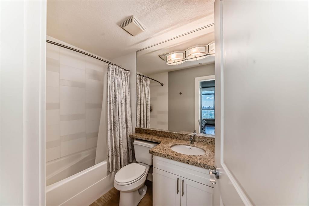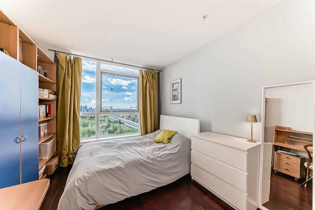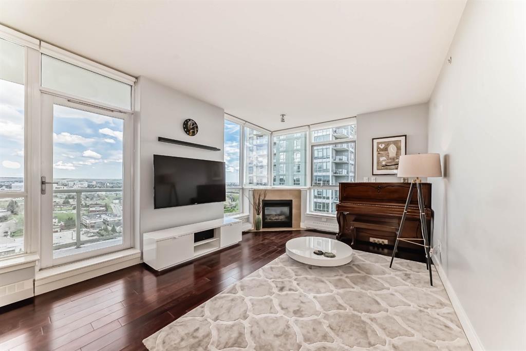 Location, Location, Location! View, View, View! Unbeatable Location with Breathtaking Views of Downtown & Shaganappi Point Golf Course. Spectacular 1,023 sq.ft condo with 2-bedroom plus Den, 2-bathroom unit is designed to impress and provide the ultimate convenience. Experience luxury living in Encore, the entrance unit door with non-disturbing from neighbour, not-side by side, where stunning panoramic city view greet you from the living room, both bedrooms and Two private balconies. This spacious, beautifully maintained unit boasts Newly replaced cabinetry, granite countertops with island in the kitchen and bathrooms, stainless steel appliances, and upgraded hardwood floors. Central air conditioning ensures year-round-comfort, while the two bedrooms plus a den provide ample space for work and relaxation. A cozy corner gas fireplace. Bright with floor to ceiling windows. Enjoy top-tier Amenities, including a large indoor pool, hot tub, fully equipped gym, game room, and on-site caretakers. With full-time security, titles underground heated parking, and a storage locker, convenience and peace of mind come standard. Ideally located just steps from the C-train station and Westbrook Shopping-mall (featuring Walmart, Safeway, foodcourt…), surrounded by river pathways, Shaganappi Golf Course, and city convenience, this is urban living at its finest. Don’t miss this opportunity and schedule your private viewing today!