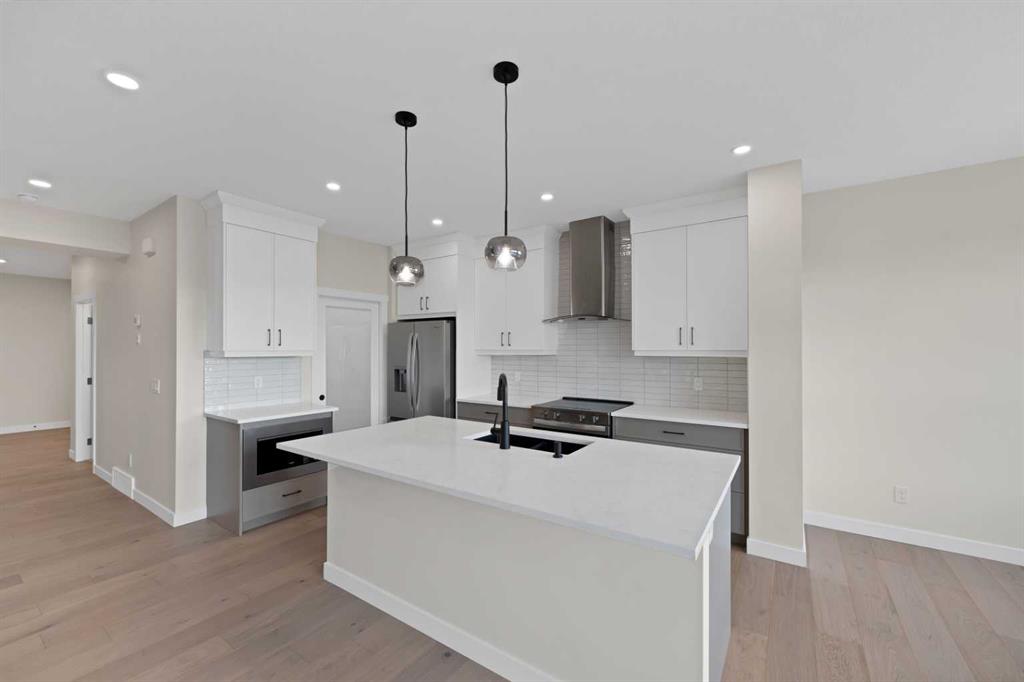 Some of the key Features in this BRAND NEW HOME | LEGAL 2-BEDROOM BASEMENT SUITE | SPICE KITCHEN | MAIN FLOOR BEDROOM & FULL BATH | TWO PRIMARY SUITES | NO NEIGHBOURS BEHIND | 2 LIVING AREAS | RAILING ON THE STAIRS | DESIGNER LIGHTING. Located in the growing community of Homestead in NE Calgary, this beautifully built home offers an impressive amount of space and a layout designed for modern family living and multi-generational comfort. The main floor features a bright and open design with a welcoming front living room, a spacious kitchen with abundant cabinetry and prep space, plus a separate spice kitchen with a GAS RANGE for added convenience. A cozy family room with an Electric Fireplace with a Stone Wall next to the dining area, creating the perfect space for everyday living and entertainment. This level also includes a bedroom and a full 4-piece bathroom, making it ideal for guests, extended family, or a home office, along with a spacious foyer and access to the attached double garage. Upstairs offers four well-sized bedrooms, including a large primary retreat with a 5-piece ensuite and walk-in closet, while the second bedroom also enjoys its own private 4-piece ensuite and walk-in closet. Two additional bedrooms share another full bathroom, and the central bonus room provides flexible space for a media room, kids’ play area, or study lounge. A convenient laundry room completes the upper level. The fully legal basement suite features a separate entrance, 9-foot ceilings, two bedrooms, a full bathroom, a modern kitchen, a comfortable living area, and its own laundry setup—perfect for rental income or extended family accommodation. With no neighbours behind and in closer proximity to parks, pathways, and future amenities, this home presents an excellent opportunity in one of Calgary’s newest communities. Some photos are virtually staged. Book your showing today.