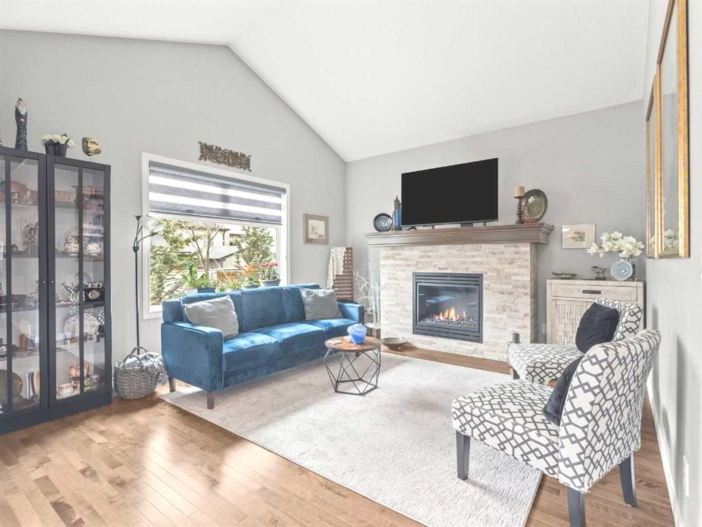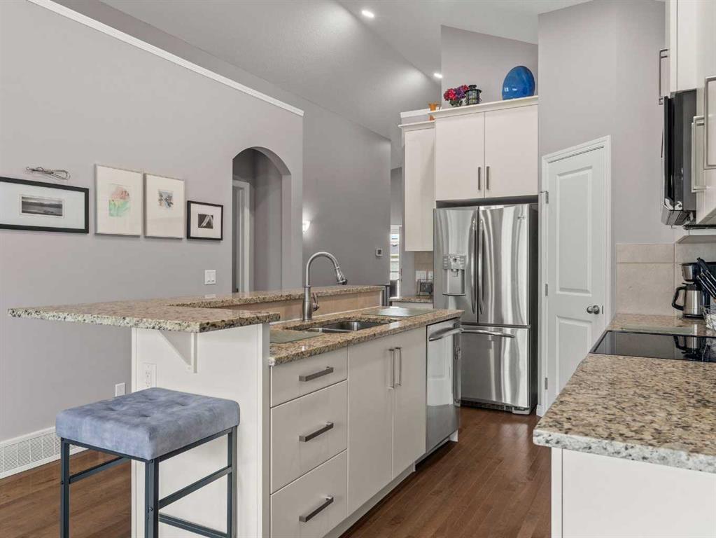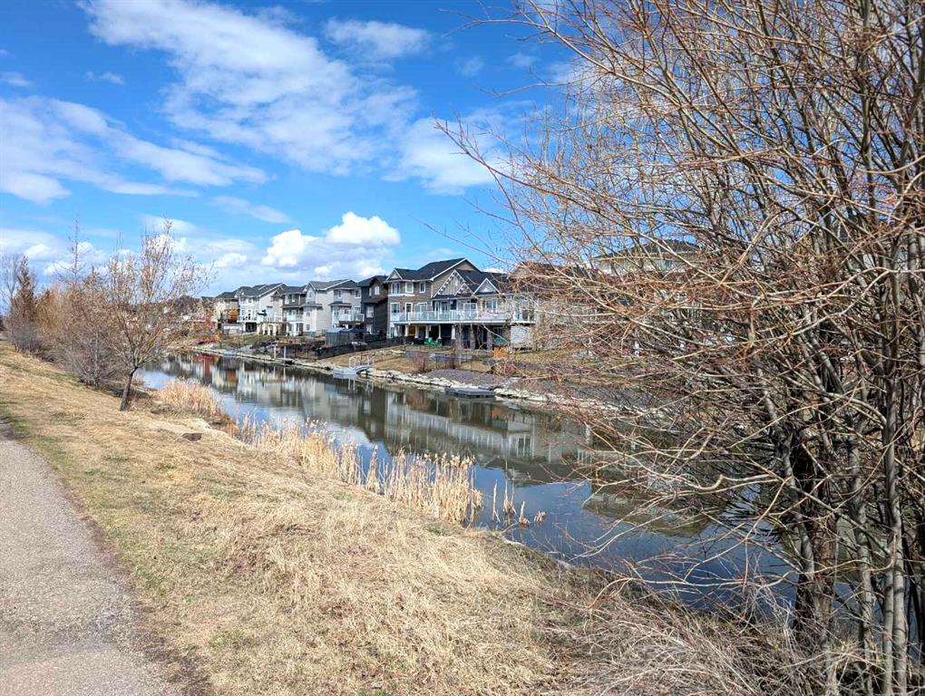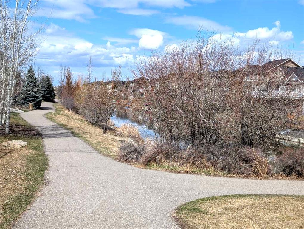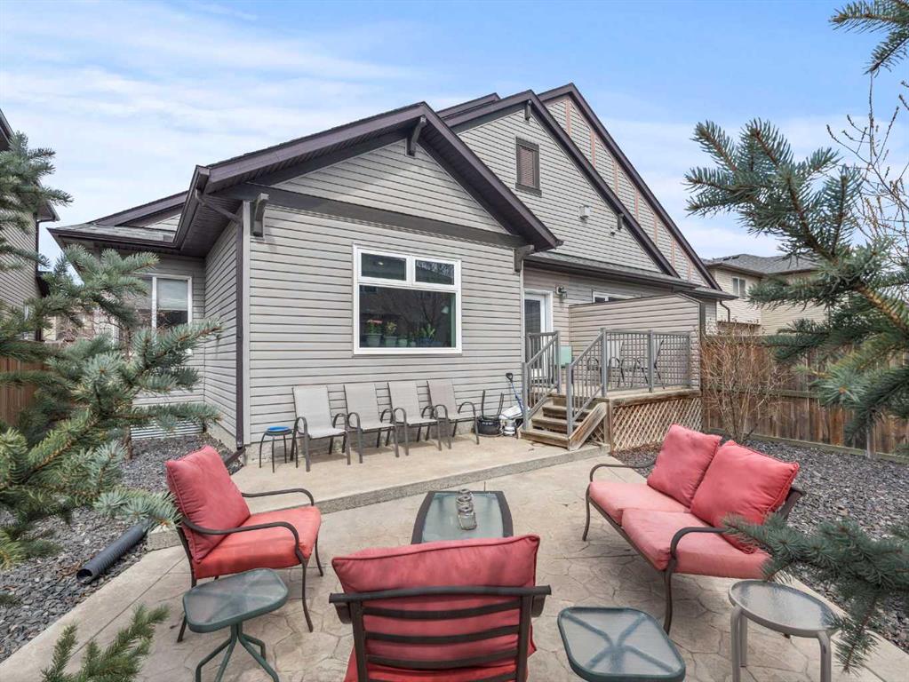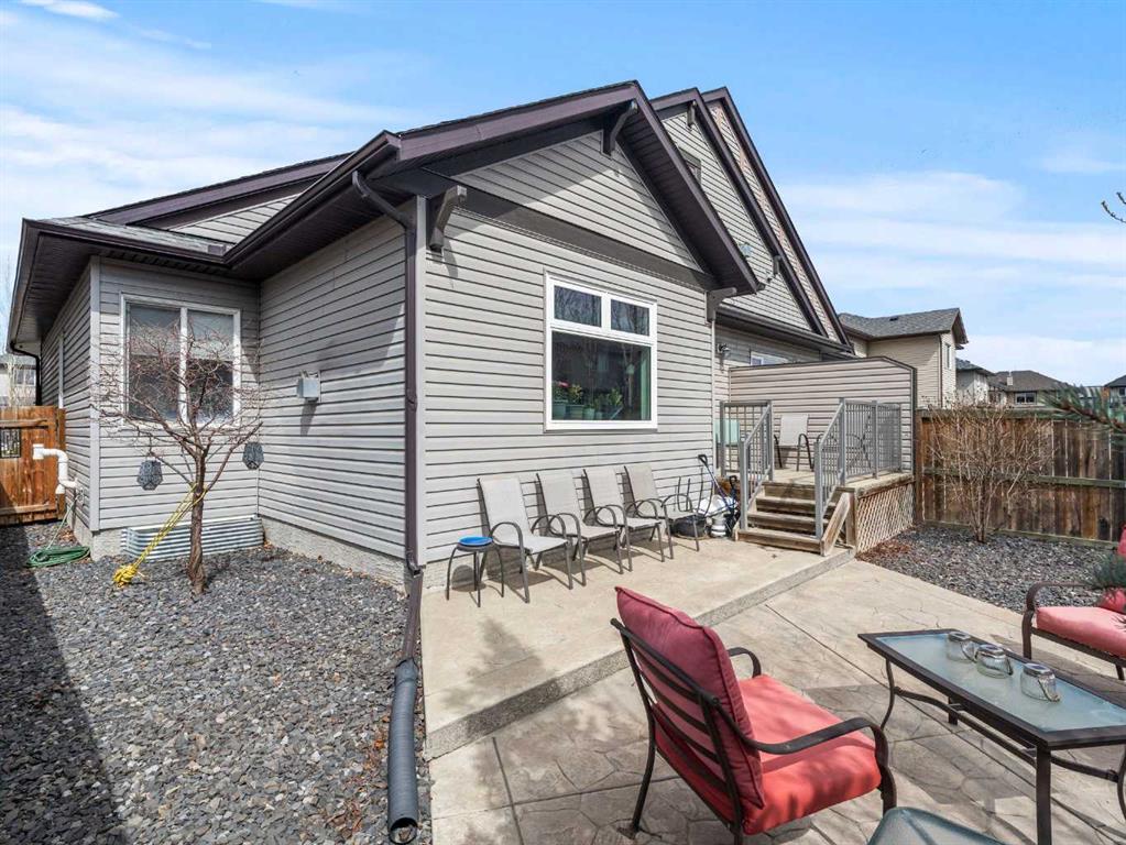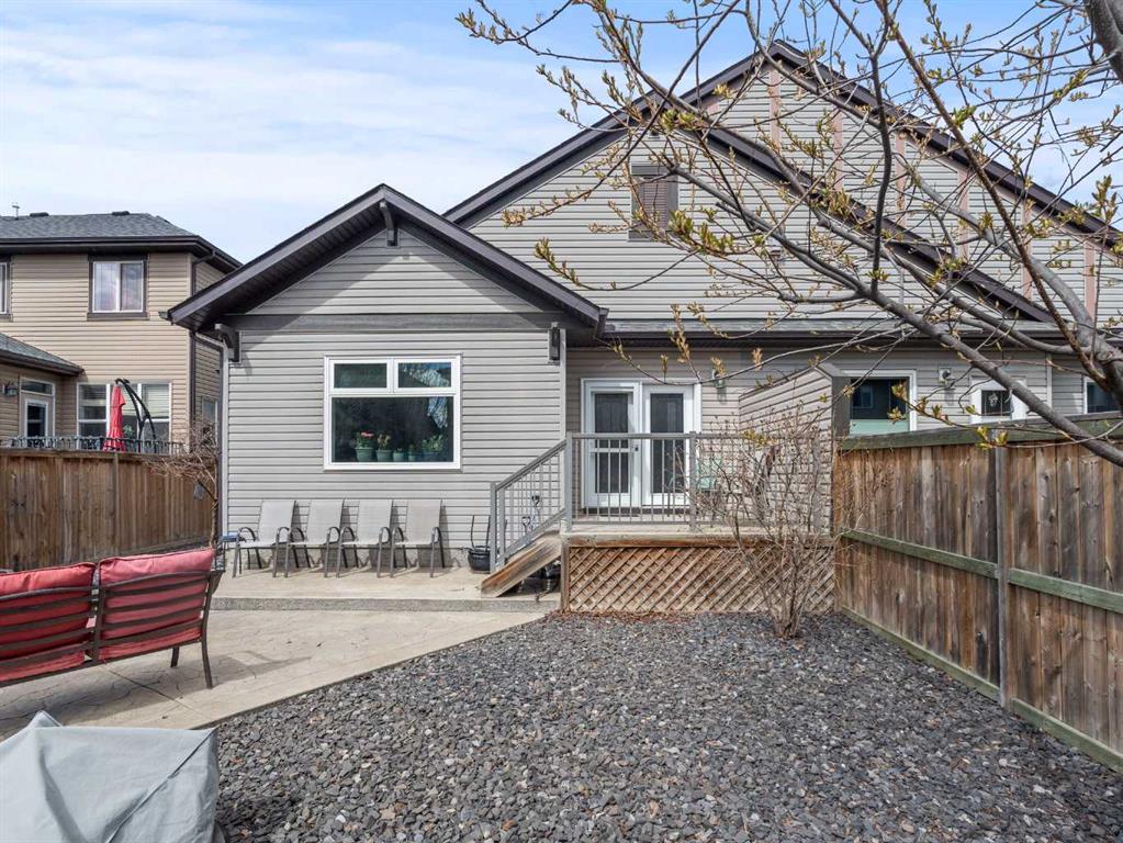 NO CONDO FEES! Welcome to this meticulously maintained 2 bed/2 bath semi-detached bungalow in one of Airdrie’s most sought-after communities! One block from the picturesque canals and walking trails in Bayside, this location offers the perfect balance of peaceful surroundings and everyday convenience. Step inside to a bright, open concept layout featuring granite countertops, stainless steel appliances, and ample workspace which flows seamlessly into the spacious living area. Soaring ceilings and a custom fireplace make this the perfect space to both relax and entertain. The generous primary retreat includes a full ensuite and walk-in closet, while the second bedroom provides flexibility for guests, a home office, or hobby space. Enjoy outdoor living without the maintenance. The thoughtfully landscaped yard with mature trees creates privacy and charm, while upgraded patio doors invite natural light inside. Recent updates add peace of mind and value, including new carpet, fresh paint, washer and dryer (within the last two years), new smoke detectors throughout, privacy glass window in the living room, and central A/C. The double garage offers secure parking and additional storage while the unfinished basement is a blank canvas ready for your vision. Whether you’re downsizing or stepping into homeownership, this property delivers comfort, quality, and an unbeatable location close to nature and minutes from amenities. Move-in ready. Exceptional value. PRICED UNDER ASSESSED TAX VALUE! Call your favorite realtor to view today!