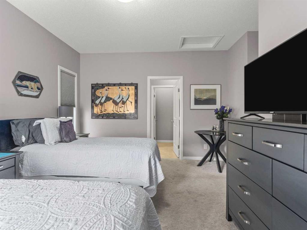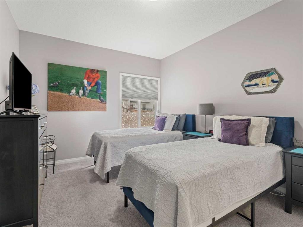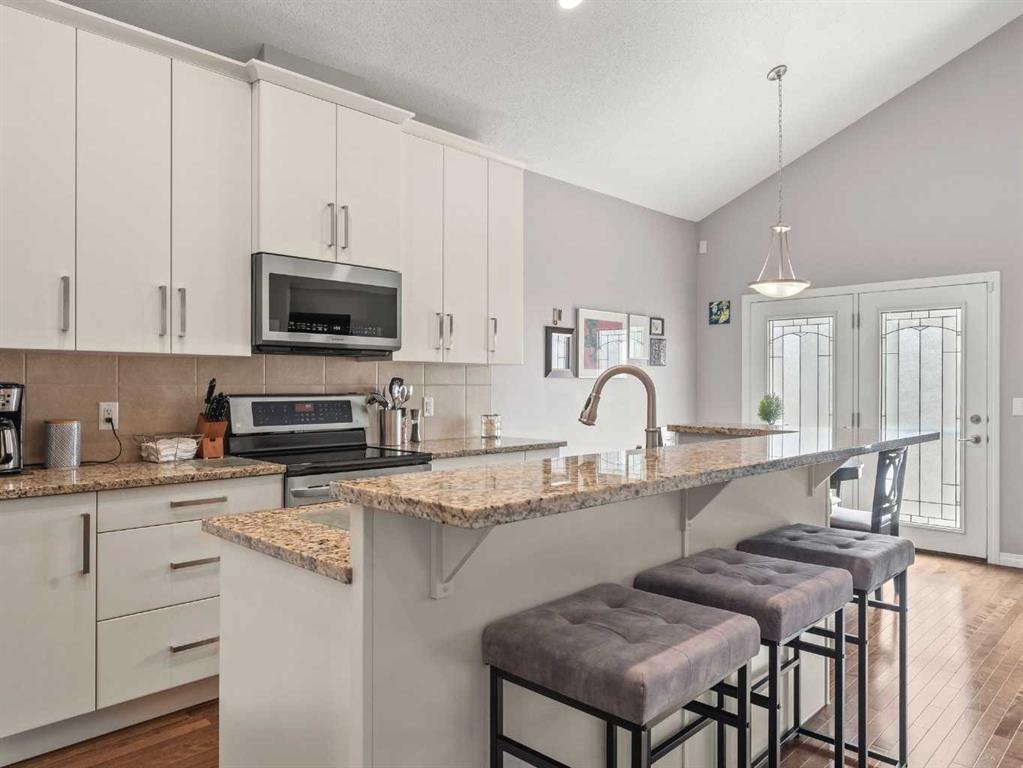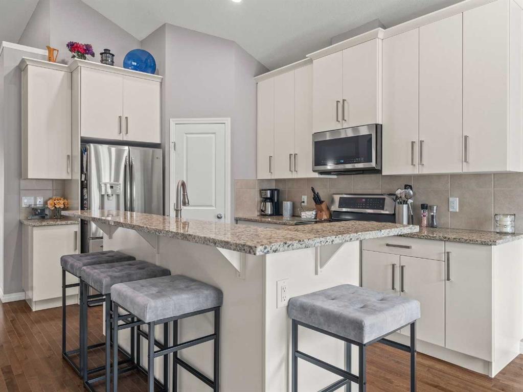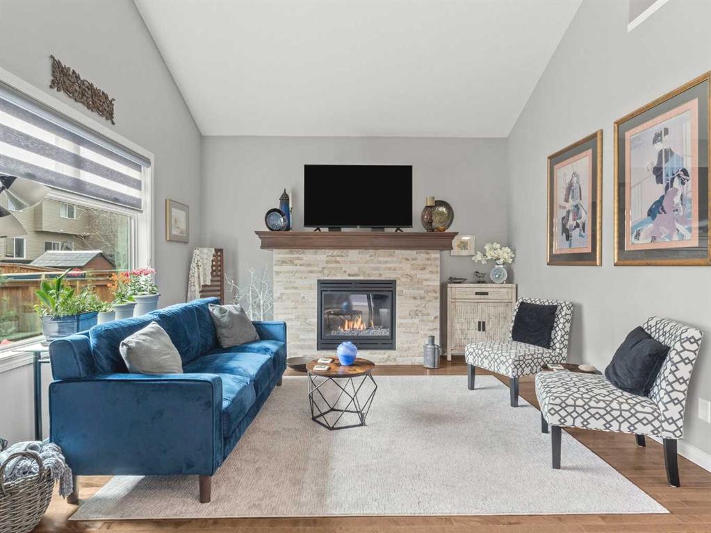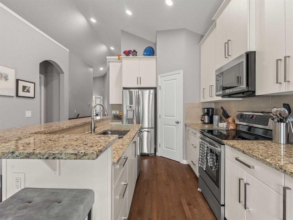 NO CONDO FEES! Welcome to this meticulously maintained 2 bed/2 bath semi-detached bungalow in one of Airdrie’s most sought-after communities! One block from the picturesque canals and walking trails in Bayside, this location offers the perfect balance of peaceful surroundings and everyday convenience. Step inside to a bright, open concept layout featuring granite countertops, stainless steel appliances, and ample workspace which flows seamlessly into the spacious living area. Soaring ceilings and a custom fireplace make this the perfect space to both relax and entertain. The generous primary retreat includes a full ensuite and walk-in closet, while the second bedroom provides flexibility for guests, a home office, or hobby space. Enjoy outdoor living without the maintenance. The thoughtfully landscaped yard with mature trees creates privacy and charm, while upgraded patio doors invite natural light inside. Recent updates add peace of mind and value, including new carpet, fresh paint, washer and dryer (within the last two years), new smoke detectors throughout, privacy glass window in the living room, and central A/C. The double garage offers secure parking and additional storage while the unfinished basement is a blank canvas ready for your vision. Whether you’re downsizing or stepping into homeownership, this property delivers comfort, quality, and an unbeatable location close to nature and minutes from amenities. Move-in ready. Exceptional value. PRICED UNDER ASSESSED TAX VALUE! Call your favorite realtor to view today!