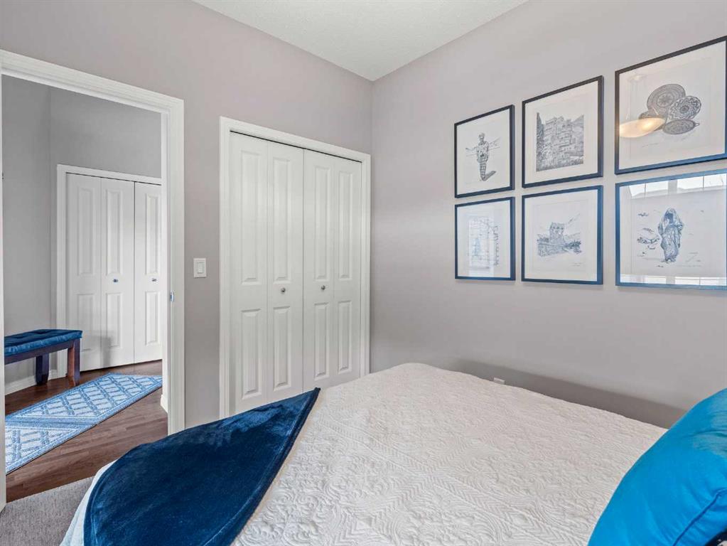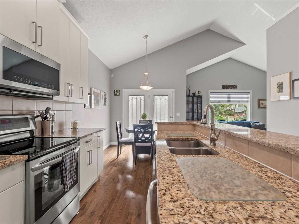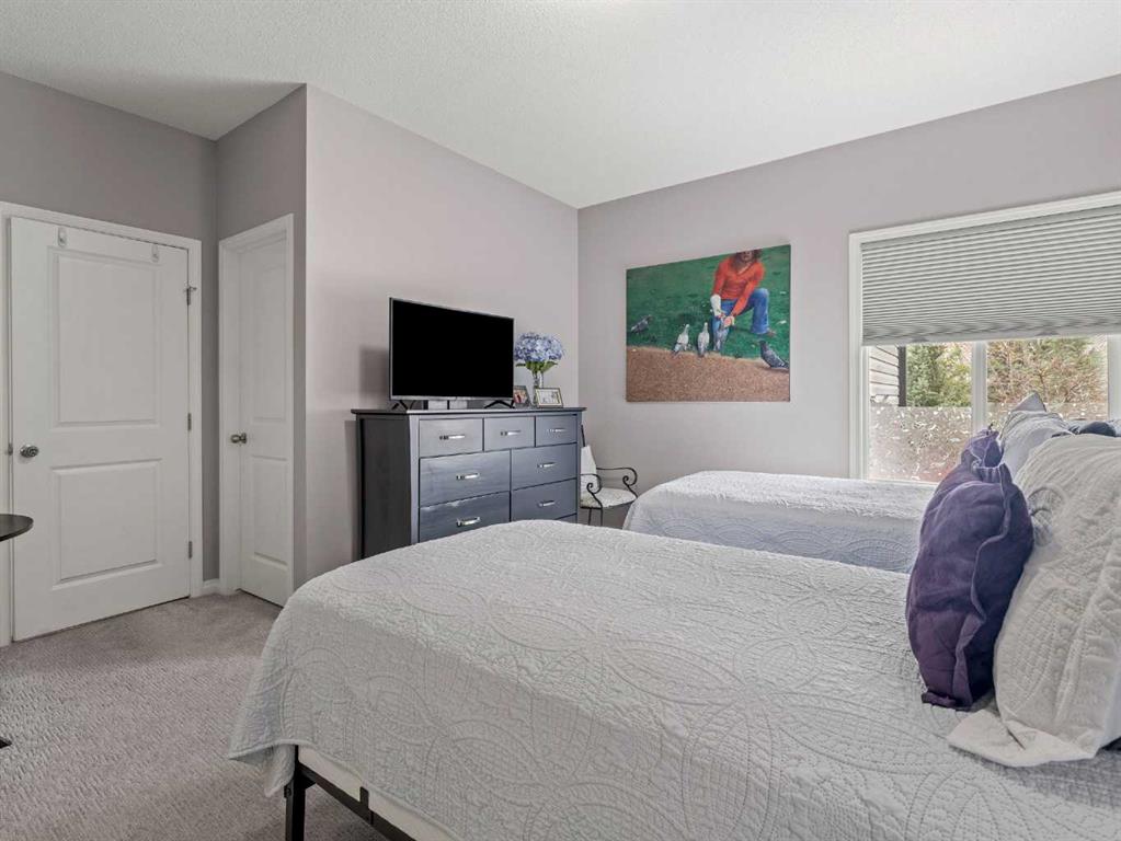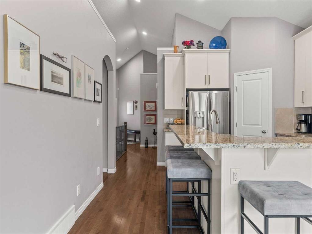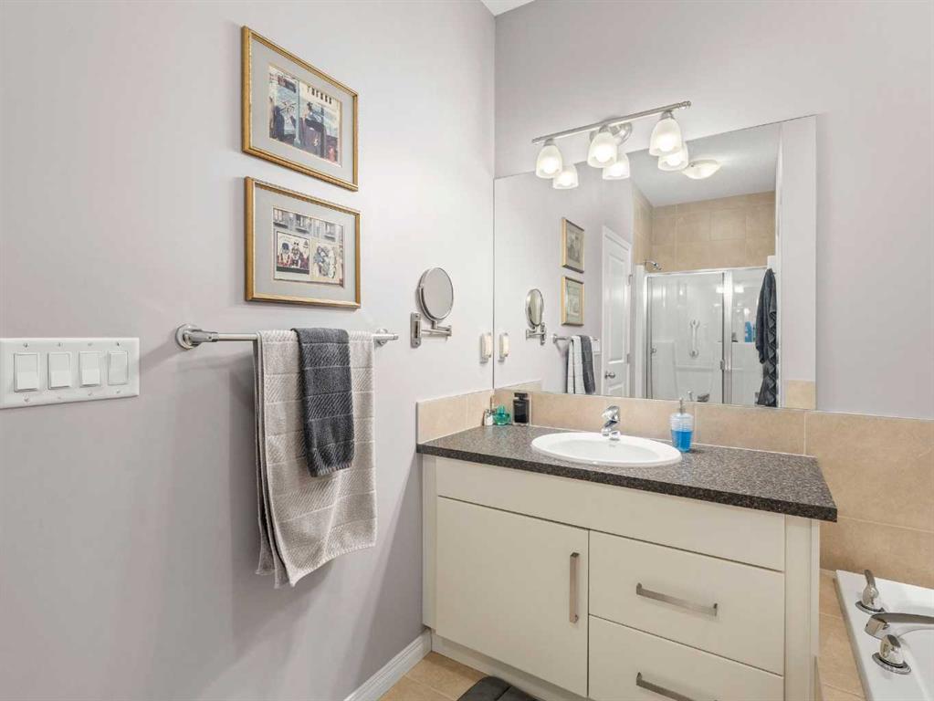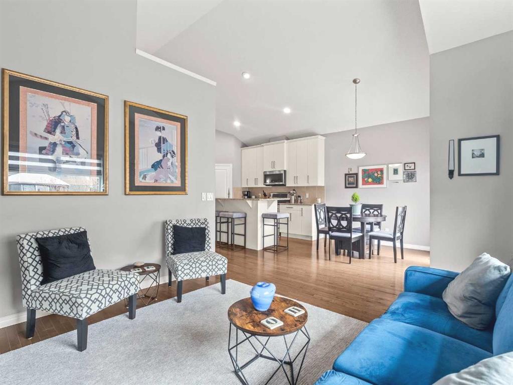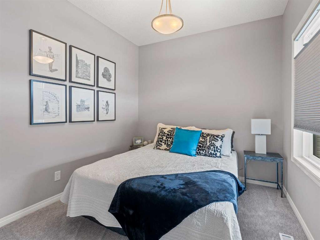 NO CONDO FEES! Welcome to this meticulously maintained 2 bed/2 bath semi-detached bungalow in one of Airdrie’s most sought-after communities! One block from the picturesque canals and walking trails in Bayside, this location offers the perfect balance of peaceful surroundings and everyday convenience. Step inside to a bright, open concept layout featuring granite countertops, stainless steel appliances, and ample workspace which flows seamlessly into the spacious living area. Soaring ceilings and a custom fireplace make this the perfect space to both relax and entertain. The generous primary retreat includes a full ensuite and walk-in closet, while the second bedroom provides flexibility for guests, a home office, or hobby space. Enjoy outdoor living without the maintenance. The thoughtfully landscaped yard with mature trees creates privacy and charm, while upgraded patio doors invite natural light inside. Recent updates add peace of mind and value, including new carpet, fresh paint, washer and dryer (within the last two years), new smoke detectors throughout, privacy glass window in the living room, and central A/C. The double garage offers secure parking and additional storage while the unfinished basement is a blank canvas ready for your vision. Whether you’re downsizing or stepping into homeownership, this property delivers comfort, quality, and an unbeatable location close to nature and minutes from amenities. Move-in ready. Exceptional value. PRICED UNDER ASSESSED TAX VALUE! Call your favorite realtor to view today!
