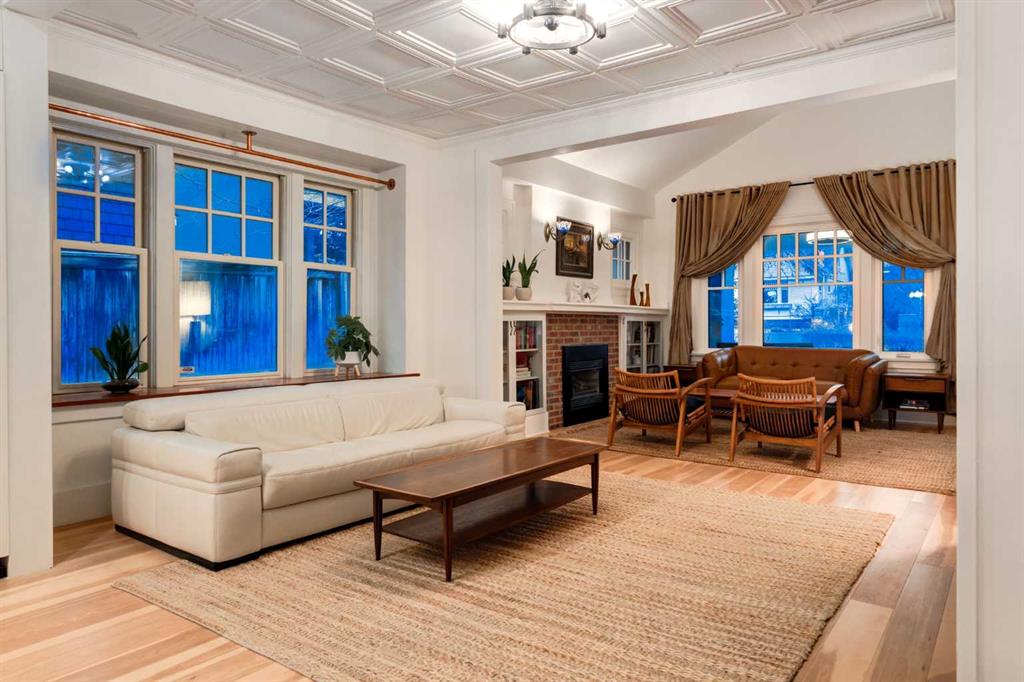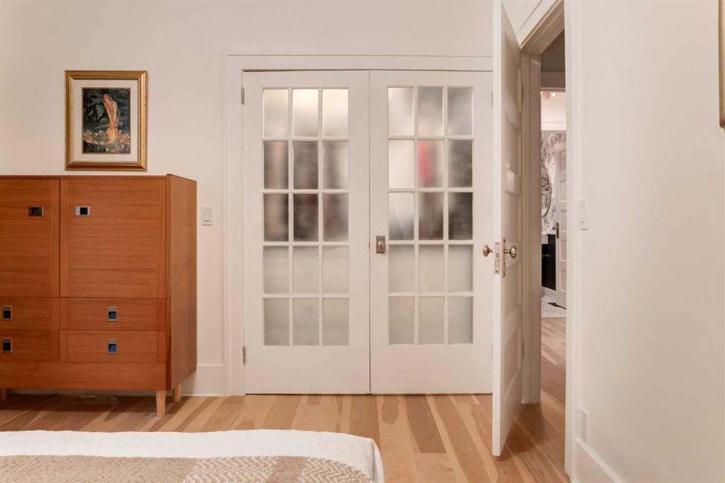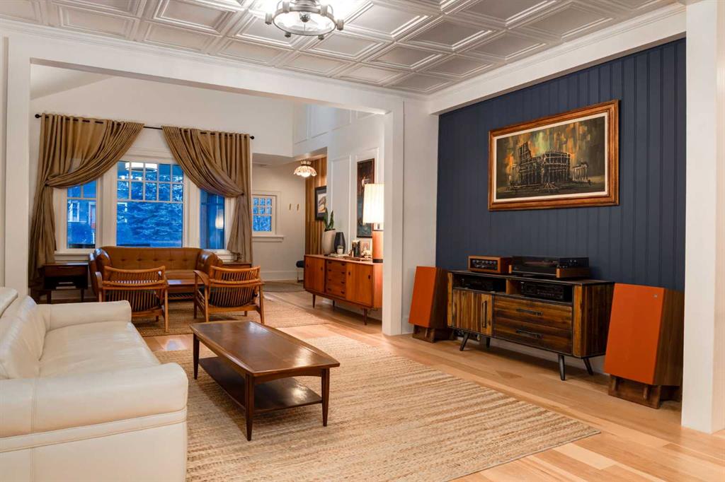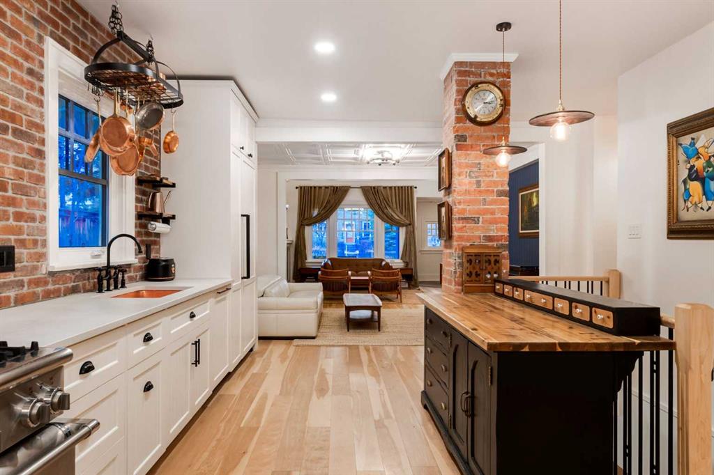 OPEN HOUSE SATURDAY – 11AM to 3PM. Set in Upper Mount Royal, this beautifully renewed Craftsman home offers an exceptional blend of architectural charm, bespoke finishes, and modern, high-performance upgrades. Surrounded by mature trees and framed by artful landscaping, the property rests on a quiet, private street just a short walk from 17th Avenue, yet feels worlds away in its tranquility. A covered front porch welcomes you into a residence defined by warmth and craftsmanship. The front gardens are meticulously designed with rock wall detailing, perennial plantings, and carefully placed rock borders with new sod installed in 2023. Established species anchor the outdoor spaces with year-round texture and colour, all maintained by a five-zone sprinkler system. At the rear of the home, double French doors open onto an expansive wraparound deck – a series of outdoor living and dining spaces that celebrate the home’s connection to nature. Inside, the residence unfolds with a curated blend of original detail and modern sophistication. Engineered hardwood floors span the main and upper levels, while custom wallpaper, stained glass sconces, coffered ceilings, vaulted ceilings—including one with a skylight—and built-in shelving create an atmosphere of timeless charm. The original brick chimney remains a focal point, preserving the home’s architectural story. The kitchen is both beautifully crafted and superbly equipped. Custom wood and beadboard cabinetry, Caesarstone countertops, and a brick backsplash are paired with a suite of premium appliances and a custom hood venting system. Details such as the copper sink, overhead potholder, and a dedicated coffee and scotch bar elevate both daily living and entertaining. The home’s bathrooms carry the same blend of history and refinement. The main bath features a classic clawfoot tub, while the primary ensuite is a true retreat, complete with a custom antique double vanity topped with hardwood counters, an oversized glass shower with gold-finished rain and hand-held fixtures, heated floors, and the original butler’s door connecting directly to the walk-in closet. The lower level offers extensive storage and a hidden room that lends itself beautifully to your own private “speakeasy”, music room, cigar and scotch lounge, or personal retreat. A new asphalt roof was installed in 2023, and a 21-panel, 8.91-kilowatt solar array added in 2025. Nearly all windows and the rear doors have been upgraded to Lux units, complemented by JELD-WEN windows in select spaces. The electrical service was upgraded to 200 amps in 2023, the furnace control board was replaced in 2024, and on-demand hot water is installed. The heated, oversized double attached garage offers exceptional utility with direct access to the home, easily accommodating two vehicles with extra space for other “toys”. This Upper Mount Royal residence embodies luxury in its truest form—not through excess, but through craftsmanship, character, and an enduring connection to place.