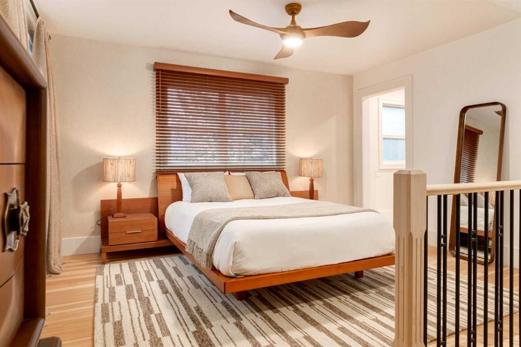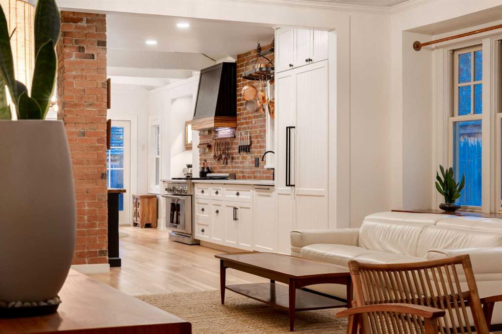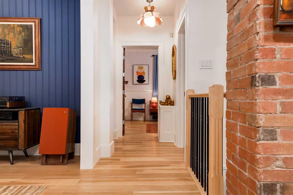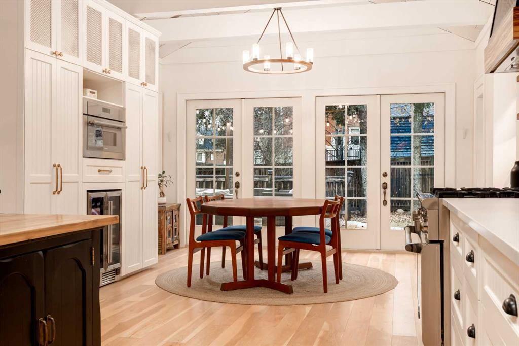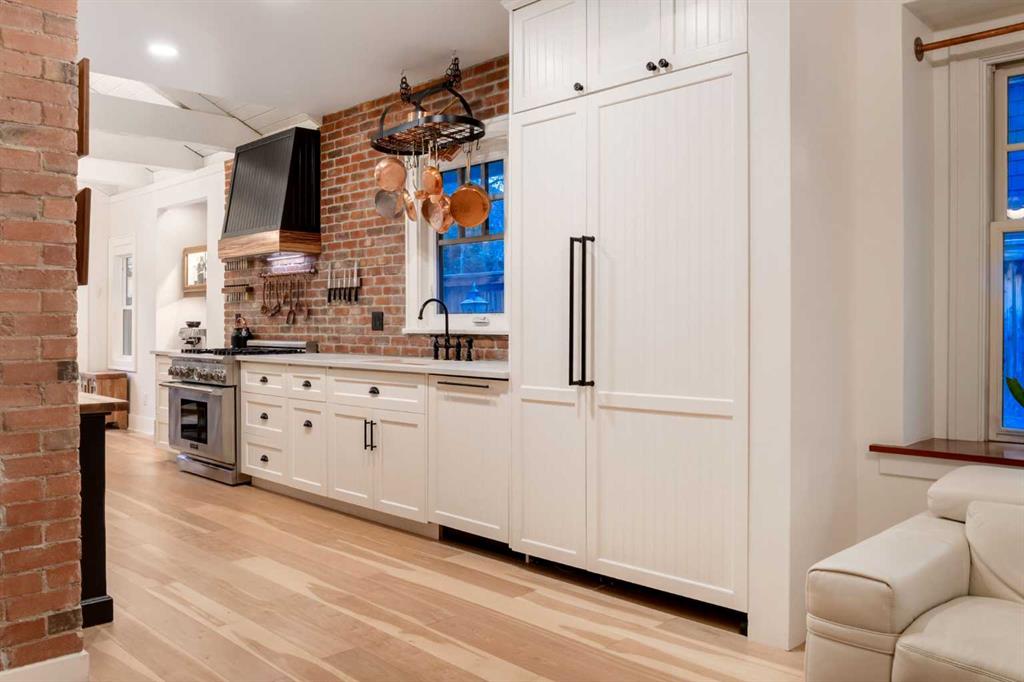 OPEN HOUSE SATURDAY – 11AM to 3PM. Set in Upper Mount Royal, this beautifully renewed Craftsman home offers an exceptional blend of architectural charm, bespoke finishes, and modern, high-performance upgrades. Surrounded by mature trees and framed by artful landscaping, the property rests on a quiet, private street just a short walk from 17th Avenue, yet feels worlds away in its tranquility. A covered front porch welcomes you into a residence defined by warmth and craftsmanship. The front gardens are meticulously designed with rock wall detailing, perennial plantings, and carefully placed rock borders with new sod installed in 2023. Established species anchor the outdoor spaces with year-round texture and colour, all maintained by a five-zone sprinkler system. At the rear of the home, double French doors open onto an expansive wraparound deck – a series of outdoor living and dining spaces that celebrate the home’s connection to nature. Inside, the residence unfolds with a curated blend of original detail and modern sophistication. Engineered hardwood floors span the main and upper levels, while custom wallpaper, stained glass sconces, coffered ceilings, vaulted ceilings—including one with a skylight—and built-in shelving create an atmosphere of timeless charm. The original brick chimney remains a focal point, preserving the home’s architectural story. The kitchen is both beautifully crafted and superbly equipped. Custom wood and beadboard cabinetry, Caesarstone countertops, and a brick backsplash are paired with a suite of premium appliances and a custom hood venting system. Details such as the copper sink, overhead potholder, and a dedicated coffee and scotch bar elevate both daily living and entertaining. The home’s bathrooms carry the same blend of history and refinement. The main bath features a classic clawfoot tub, while the primary ensuite is a true retreat, complete with a custom antique double vanity topped with hardwood counters, an oversized glass shower with gold-finished rain and hand-held fixtures, heated floors, and the original butler’s door connecting directly to the walk-in closet. The lower level offers extensive storage and a hidden room that lends itself beautifully to your own private “speakeasy”, music room, cigar and scotch lounge, or personal retreat. A new asphalt roof was installed in 2023, and a 21-panel, 8.91-kilowatt solar array added in 2025. Nearly all windows and the rear doors have been upgraded to Lux units, complemented by JELD-WEN windows in select spaces. The electrical service was upgraded to 200 amps in 2023, the furnace control board was replaced in 2024, and on-demand hot water is installed. The heated, oversized double attached garage offers exceptional utility with direct access to the home, easily accommodating two vehicles with extra space for other “toys”. This Upper Mount Royal residence embodies luxury in its truest form—not through excess, but through craftsmanship, character, and an enduring connection to place.