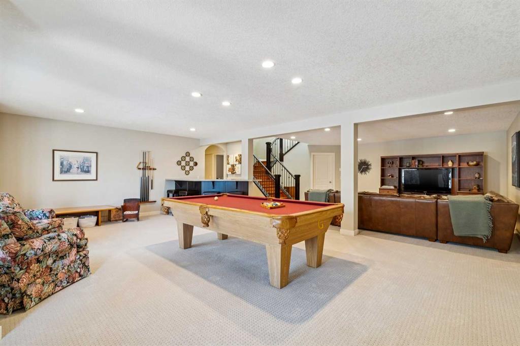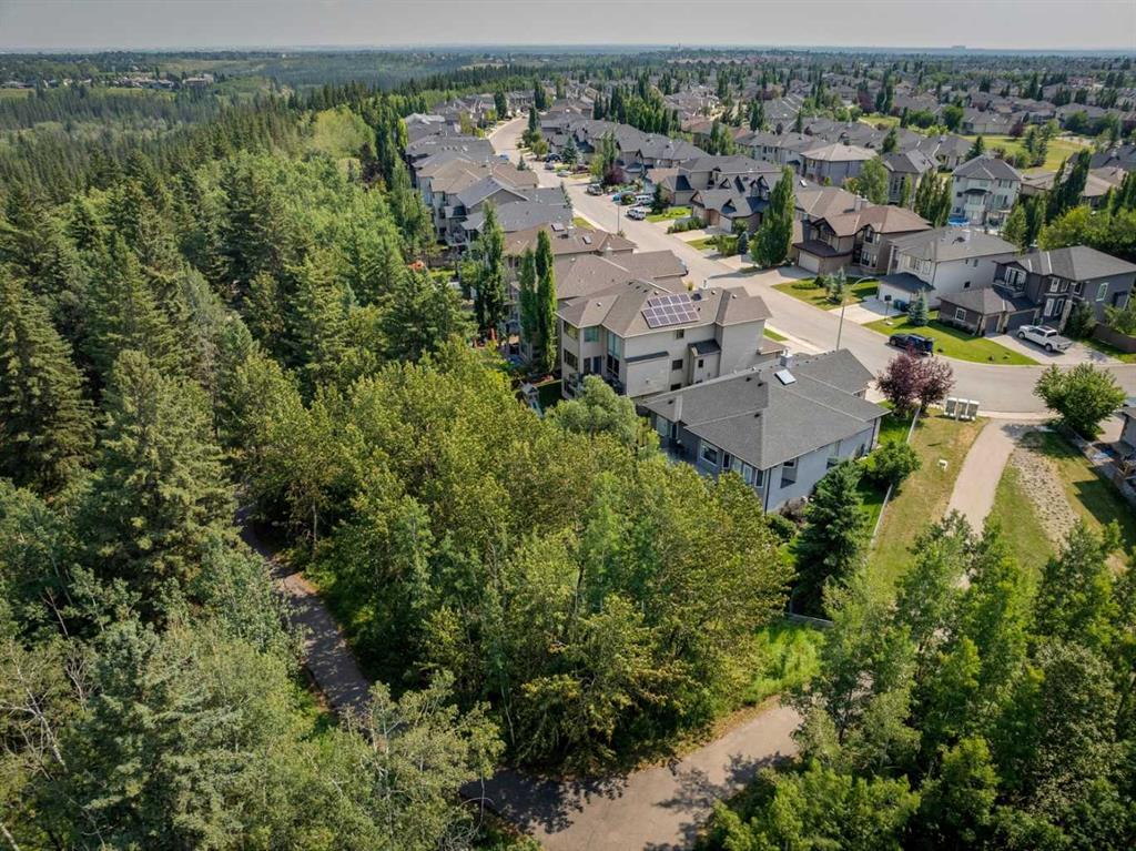 Offered for the first time by the original owner, this immaculate home shows true pride of ownership throughout! Ideally located backing directly onto Fish Creek Park, the property enjoys a large pie-shaped lot in a peaceful natural setting with mature trees and immediate access to some of Calgary’s best walking and cycling pathways right outside your door. The main level features an open and inviting layout with 9 foot ceilings, beautiful hardwood floors, and oversized windows which fill the space with natural light and offer tranquil views of the park. The open plan layout features a spacious living room with a cozy gas fireplace, adjoining breakfast nook with doors onto a spacious deck, and well-appointed kitchen with granite countertops, a raised island with space for stools, ample cabinetry, a corner pantry, and premium stainless appliances. A formal dining room with a tray ceiling provides an elegant space for entertaining. The primary bedroom is generously sized and offers views of the park, and features a generous ensuite bathroom and walk-in closet. Rounding out the main floor are a second bedroom, a sunlit den with south facing windows, a full main bathroom, and a convenient laundry and mudroom. The walkout lower level extends the living space with a large family room, wet bar, pool table area, two additional bedrooms, a full bathroom, and abundant storage. The walkout patio looks onto the treed green space beyond, further enhancing the connection to the park. The extra wide garage is ideal for storage or a workshop in addition to parking for two vehicles. Additional updates include a new roof shingles in September 2025, a new hot water tank in 2024, and central air conditioning in 2022. Close to parks, schools, shopping, and more. This is a rare opportunity to own a beautifully cared for home in an unbeatable Fish Creek Park setting, offering privacy and beautiful surroundings. Call your favorite Realtor to schedule a private viewing!