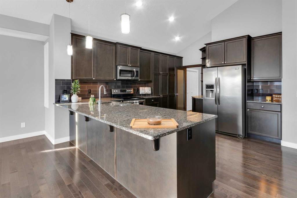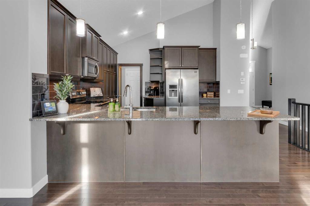 OPEN HOUSE: Saturday, January 17th from 1pm-3pm. Welcome to this wonderfully cared-for 4-bedroom, 2.5-bath bungalow sitting proudly on a sunny corner lot in the always-popular Heritage Hills community of Cochrane. Whether you’re a growing crew looking for more space or a seasoned homeowner craving the ease of single-level living, this place brings together comfort, style, and smart design in all the right ways. Kick back on your back deck and enjoy those partial mountain views, then step inside to a layout that just flows. With 1,521 sq ft on the main level and another 1,409 sq ft of fully finished basement bliss, there’s room here for game nights, hobby time, guests, or whatever fun life throws your way. Main Floor Highlights: Bright, breezy, open-concept vibes with a mix of hardwood, tile, and cozy carpet. A chef-worthy kitchen featuring stainless steel appliances, under-cabinet lighting, loads of cabinetry, and all the storage you could wish for. A warm, inviting living room with a gas fireplace with blower and extra windows that practically chase the sunlight. Main floor laundry—because convenience is a love language. A dreamy primary suite with vaulted ceilings, a walk-in closet, and a spa-like ensuite complete with heated floors and a soaker tub. Two decks out back plus a charming front porch—perfect for morning coffees, evening sips, or friendly neighbour chats. Lower Level Features: 9-foot ceilings that make the basement feel anything but “basementy”. A big, cheerful bonus/family room ready for movie marathons or epic play spaces. Two roomy bedrooms with oversized windows. A full bathroom, a wine/beer-making room with its own sink, cold storage, and tons of extra storage throughout. Additional Perks: Radon mitigation system already in place, Hunter Douglas blinds across the main floor, Central vacuum and an assumable security system ($40/month), RV parking pad (or convert it to more green space—your call!) Professionally landscaped yard with underground irrigation and garden beds. A low-maintenance buffer between you and the neighbour for extra privacy. Nestled in a friendly community close to parks, trails, and all of Cochrane’s best amenities, this home gives you that sweet spot of peaceful suburban living with quick access to Highway 1A—hello Calgary, Ghost Lake, and the Rockies! Whether you’re planning your next chapter or simply searching for a home that fits your life right now, this Heritage Hills bungalow brings comfort, accessibility, and charm together in one irresistible package.