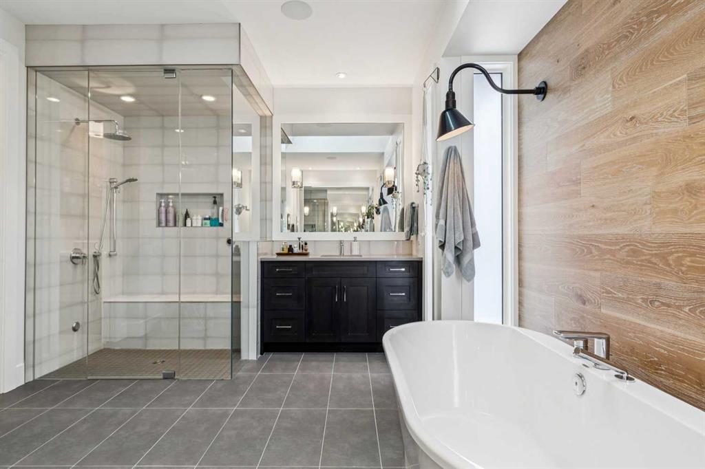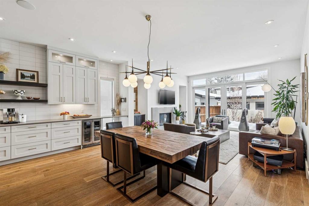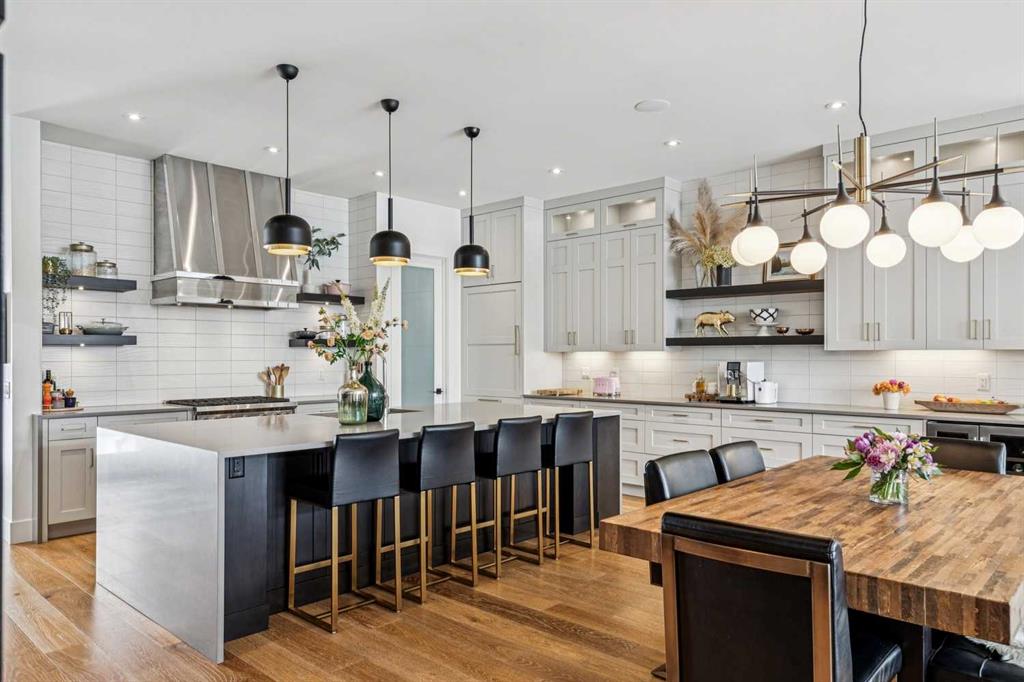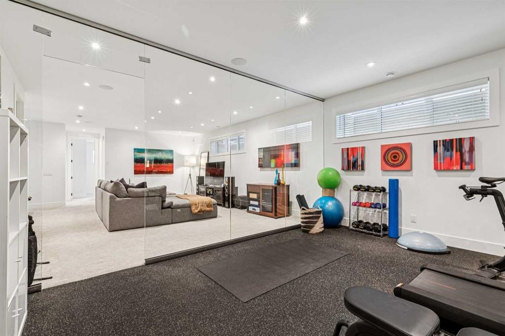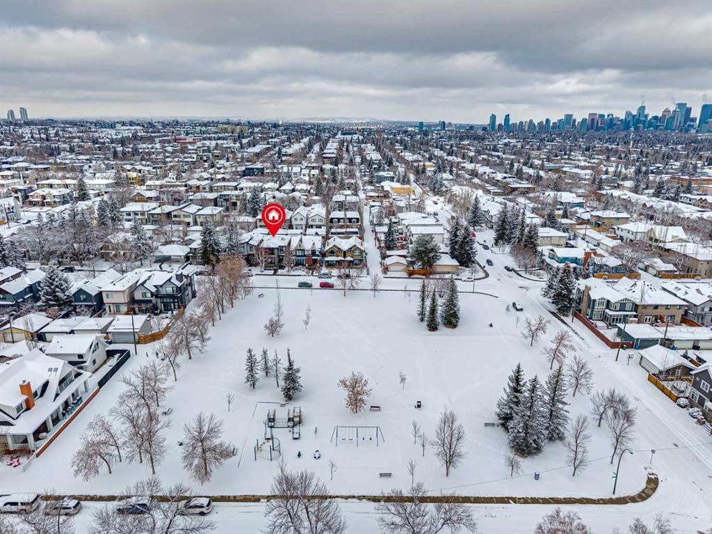 Parkside living meets elevated design in this luxurious detached home by award-winning custom builder CNJ Developments, ideally positioned on a tree-lined street in a prime location directly facing a green space. Thoughtful comfort upgrades elevate everyday living including central air conditioning, central vacuum, a power humidifier & built-in speakers across all 3 levels. Exceptional functionality & style come together in the chef-inspired kitchen where abundant 2-toned cabinetry, quartz countertops & high-end stainless steel appliances support both everyday cooking & entertaining. A Wolf gas range & Sub-Zero refrigerator anchor the appliance package while a beverage fridge, custom pantry & large centre island encourage casual gathering. Centring the open concept space, the dining room with chic lighting & clear sightlines promotes effortless conversation. Relaxation unfolds in the living room where a gas fireplace framed by built-ins creates a warm focal point while an entire wall of windows opens to the backyard, encouraging a seamless indoor & outdoor lifestyle. Organization remains simple thanks to a custom mudroom designed to store everyday essentials & seasonal gear. Productivity finds a quiet setting in the private main floor den where oversized windows & a wood ceiling detail create a sophisticated home office environment. Natural light continues upstairs where skylights brighten the hallway leading to the primary retreat. Oversized windows frame park views while a private balcony offers a peaceful setting for morning coffee or evening relaxation. An elegant tray ceiling enhances the sense of space while the luxurious ensuite includes dual vanities, a deep soaker tub, heated floors & an oversized steam shower. A skylight introduces additional daylight while a custom walk-in closet supports organized daily routines. Two additional bedrooms feature spacious layouts with wallpaper feature walls while a stylish 4-piece bathroom & convenient upper laundry complete the level. The fully finished lower living expands the home with heated floors that provide consistent comfort throughout. Evenings gather easily in the recreation room for movies or games while a wet bar keeps snacks & drinks within easy reach. Fitness routines remain convenient with a dedicated home gym while a fourth bedroom, versatile den & modern 4-piece bathroom offer flexibility for guests or hobbies. Outdoor living continues in the fully fenced backyard where children & pets have room to play & a patio invites summer barbeques & quiet evenings outdoors. Added privacy is created by the triple detached garage accessed from the rear lane. Sunny south exposure highlights the front patio where peaceful park views create a welcoming place to relax. Sandy Beach Park, the Elbow River pathways & the vibrant amenities of Marda Loop including boutique shops, tennis courts, the outdoor pool & acclaimed dining are all within walking distance, supporting an exceptional inner-city lifestyle.