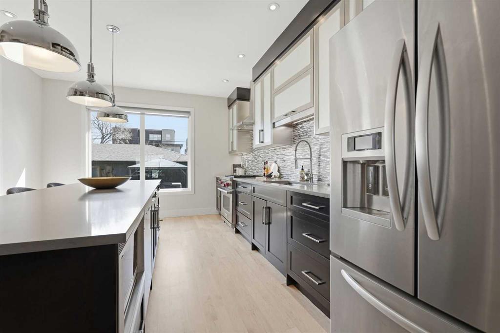 OPEN HOUSE SATURDAY, APRIL 18TH & SUNDAY, APRIL 19TH FROM 1-4 PM EACH DAY. Experience the pinnacle of Altadore living in this beautifully upgraded modern home. Discover over 2,900 sq ft of meticulously curated living space in this stunning 3+1 bedroom infill, situated on a rare extra-deep 139′ lot with sunny south back yard. From the moment you enter, the home radiates a “like-new” glow, boasting fresh paint, refinished hardwoods, new carpeting and stylish new designer lighting throughout. The main level is anchored by a striking floor-to-ceiling fireplace in the living room, flowing seamlessly into a generous dining area designed for grand-scale hosting. The kitchen is a true chef’s sanctuary, featuring an expansive island with breakfast bar, a massive walk-in pantry, and high-end stainless steel appliances. A mudroom and a 2 piece powder room with a charming floral wallpaper accent complete the main level. An open riser staircase leads to the second level, where the primary retreat serves as a private oasis, complete with dual walk-in closets and a spa-like ensuite featuring an oversized shower. Two additional bedrooms (one with walk-in closet), a 4 piece main bath & laundry room with additional storage are the final touches to the second level. The fully developed basement includes a large recreation room, a fourth bedroom, and a 3 piece bath—ideal for guests or teens. Additional highlights include central air conditioning, a new central vacuum system, hot water on demand, and ICF party wall construction for enhanced comfort and sound attenuation. Outdoors, enjoy a beautifully landscaped front garden filled with mature perennials and a low maintenance south facing backyard with a spacious patio that acts as a sun-drenched extension of the home. Parking is effortless with an oversized double detached garage. This exceptional home is ideally located walking distance to Glenmore Athletic Park & Sandy Beach, and close to two golf courses, schools, shopping, public transit, and offers quick access to both Crowchild and Glenmore Trails.
